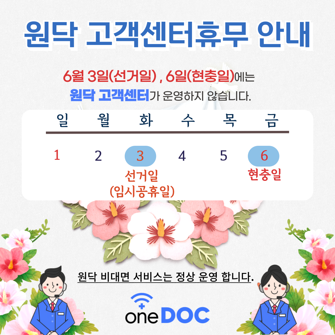 다가오는 공휴일에 따라 2025년 6월 고객센터 운영 일정을 안내드립니다.서비스 이용에 참고 부탁드려요!