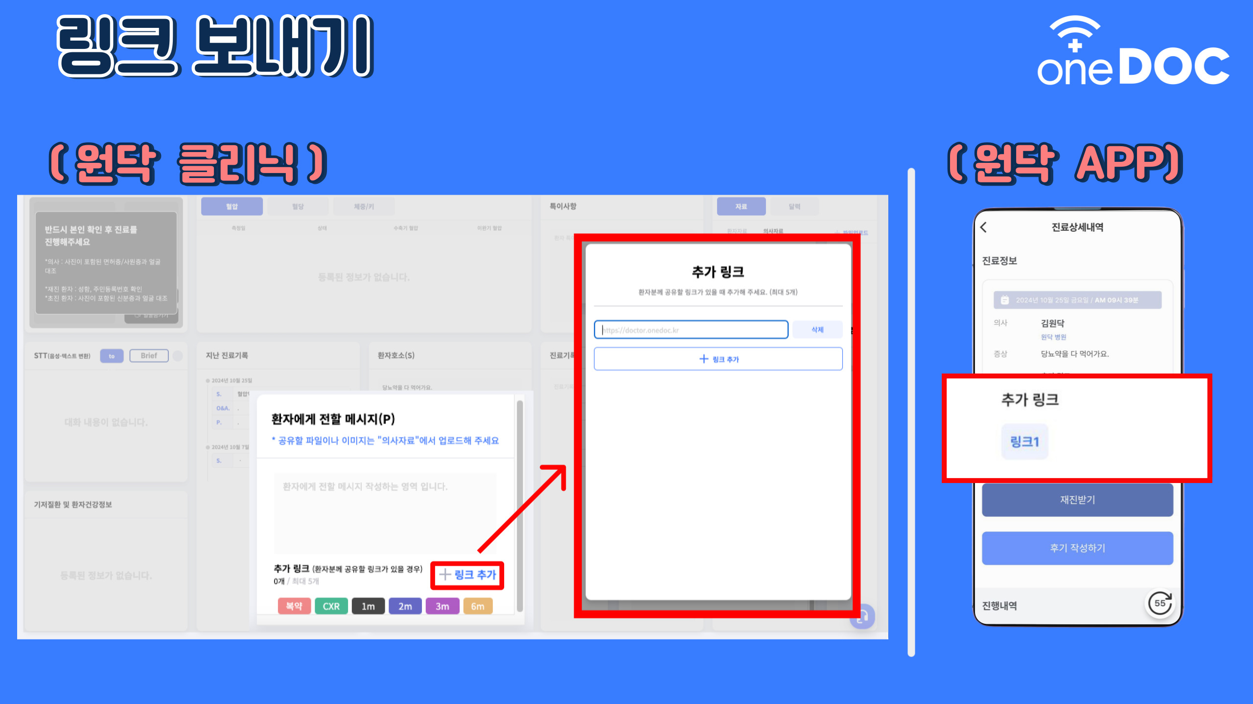 원닥 앱에서 진료비 결제 후 해당 링크 버튼을 확인하고 이동할 수 있습니다.