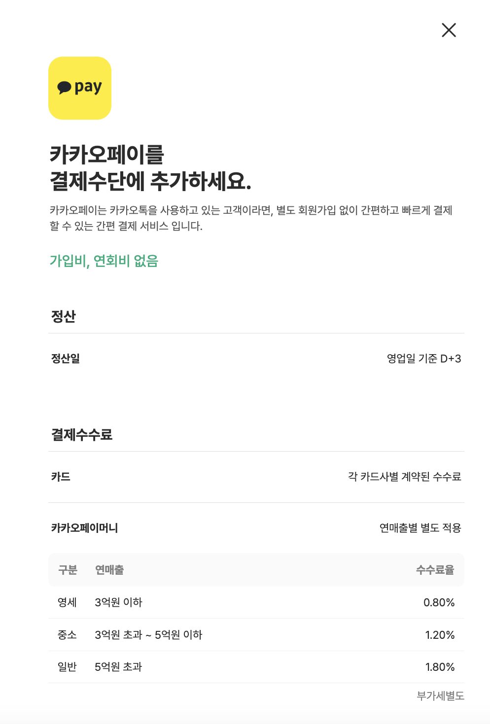 결제 수단 별 수수가 상이하니 확인 후 반영해 주세요