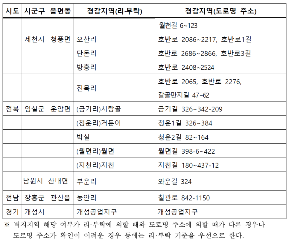 2. 경기 | 5 | 가평군, 동두천시, 양평군, 여주시, 연천군 |
