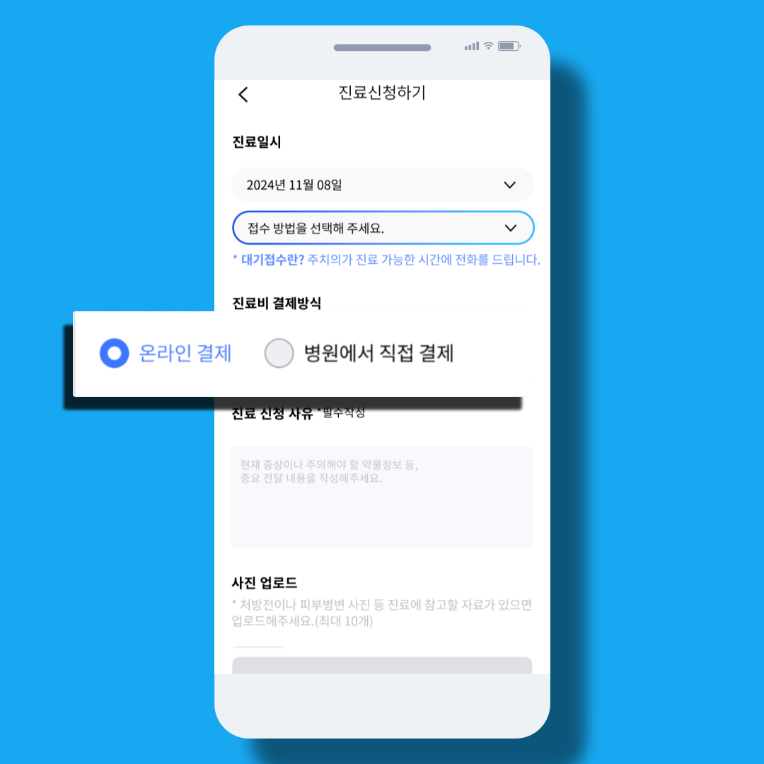 병원에서 직접 결제 선택 시, 진료비 수납방법은 반드시 병의원과 상의하세요.