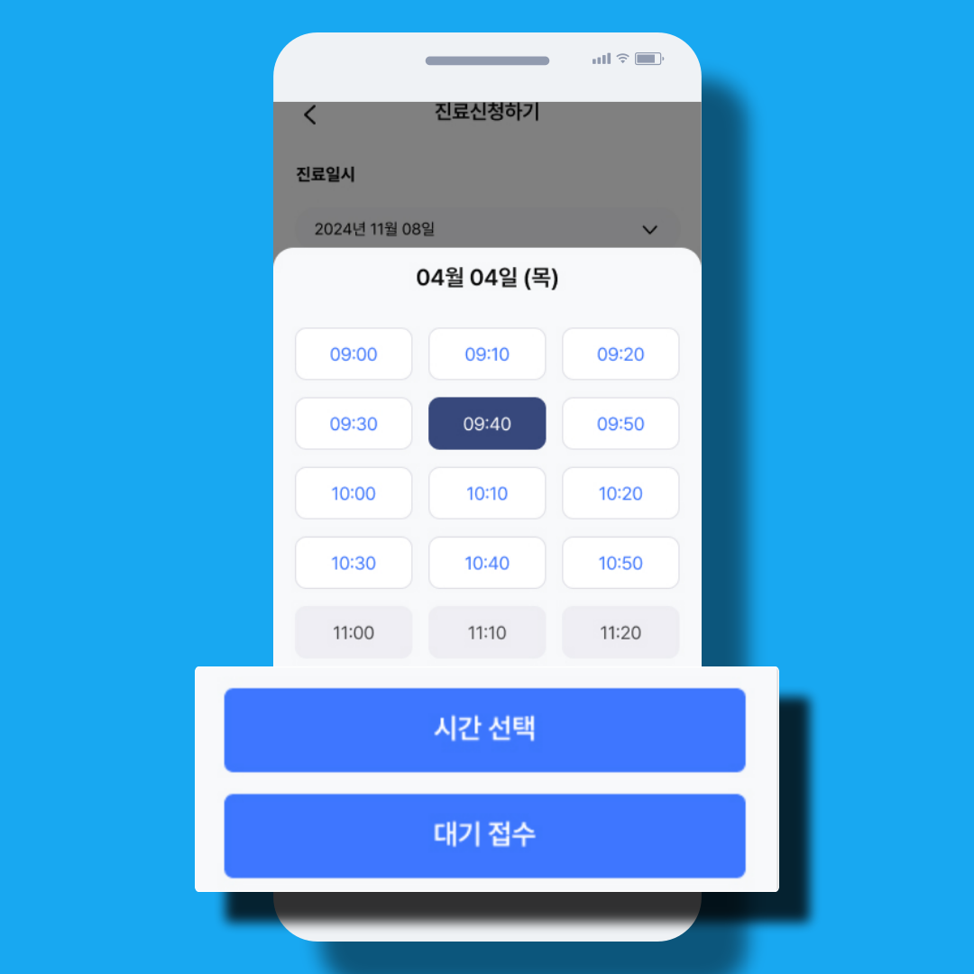 진료 받고자 하는 일자와 시간을 선택해 주세요