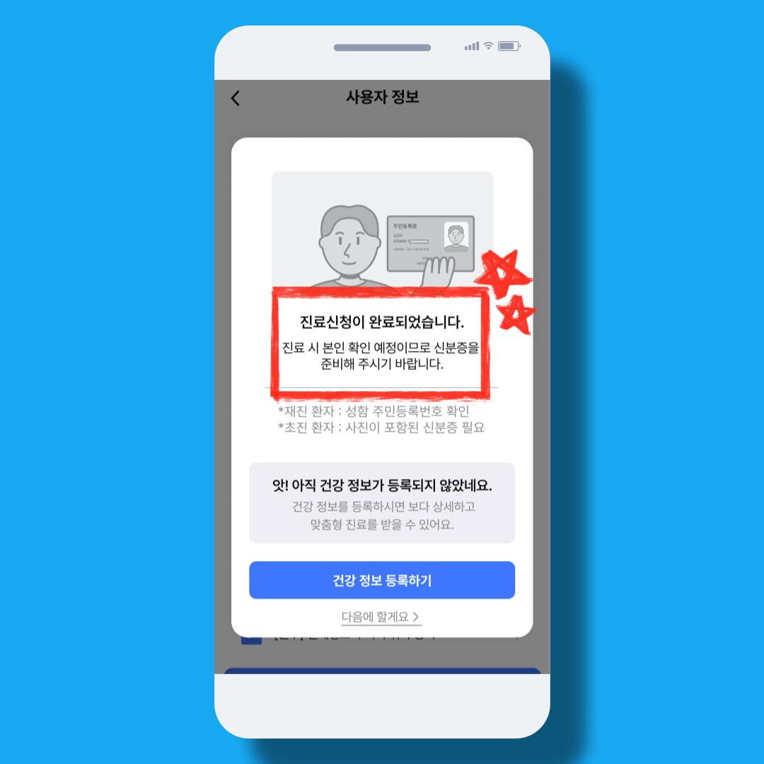 초진 : 사진이 포함된 신분증을 미리 준비해 주세요