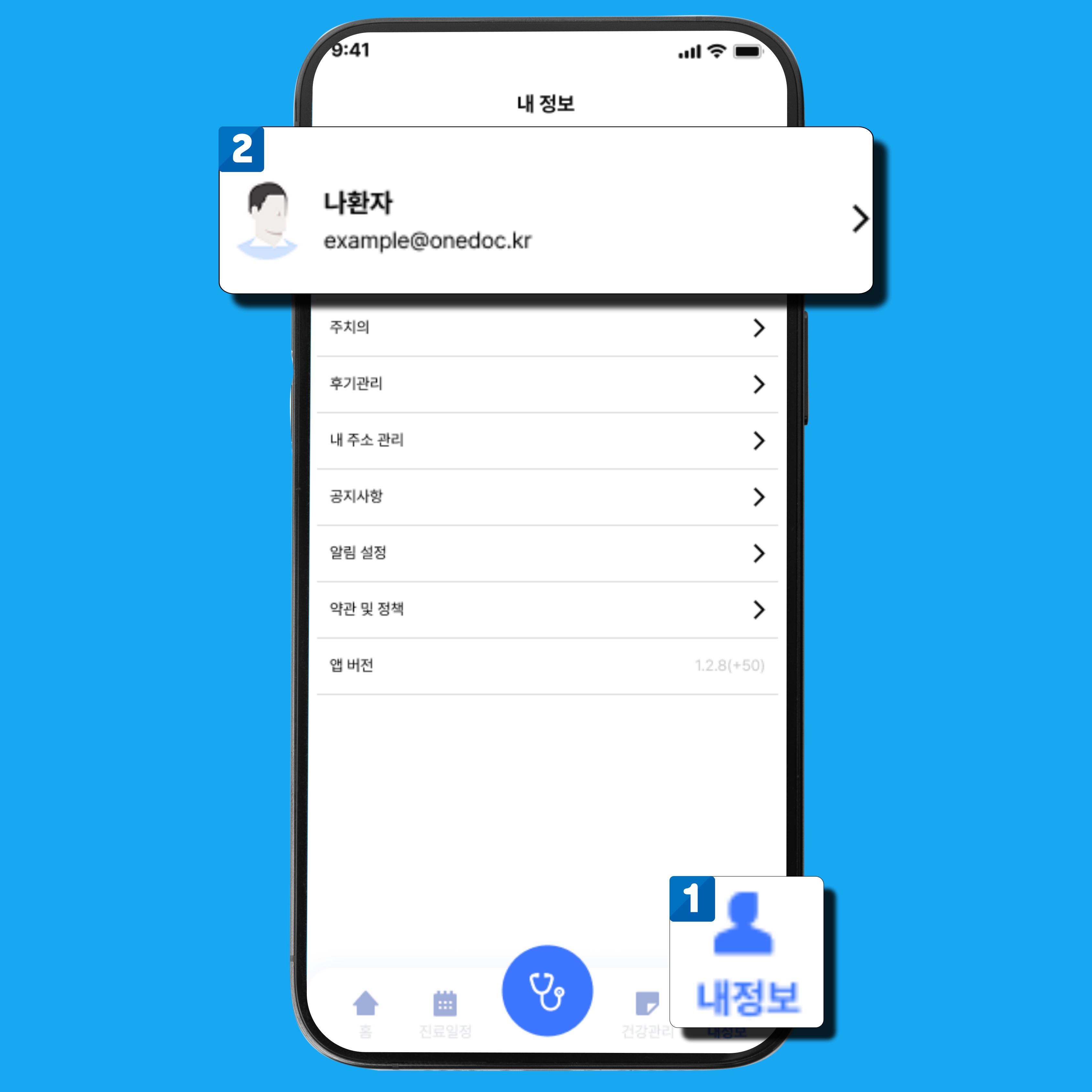 맨 하단 [ 내 정보 ] 버튼을 눌러주세요