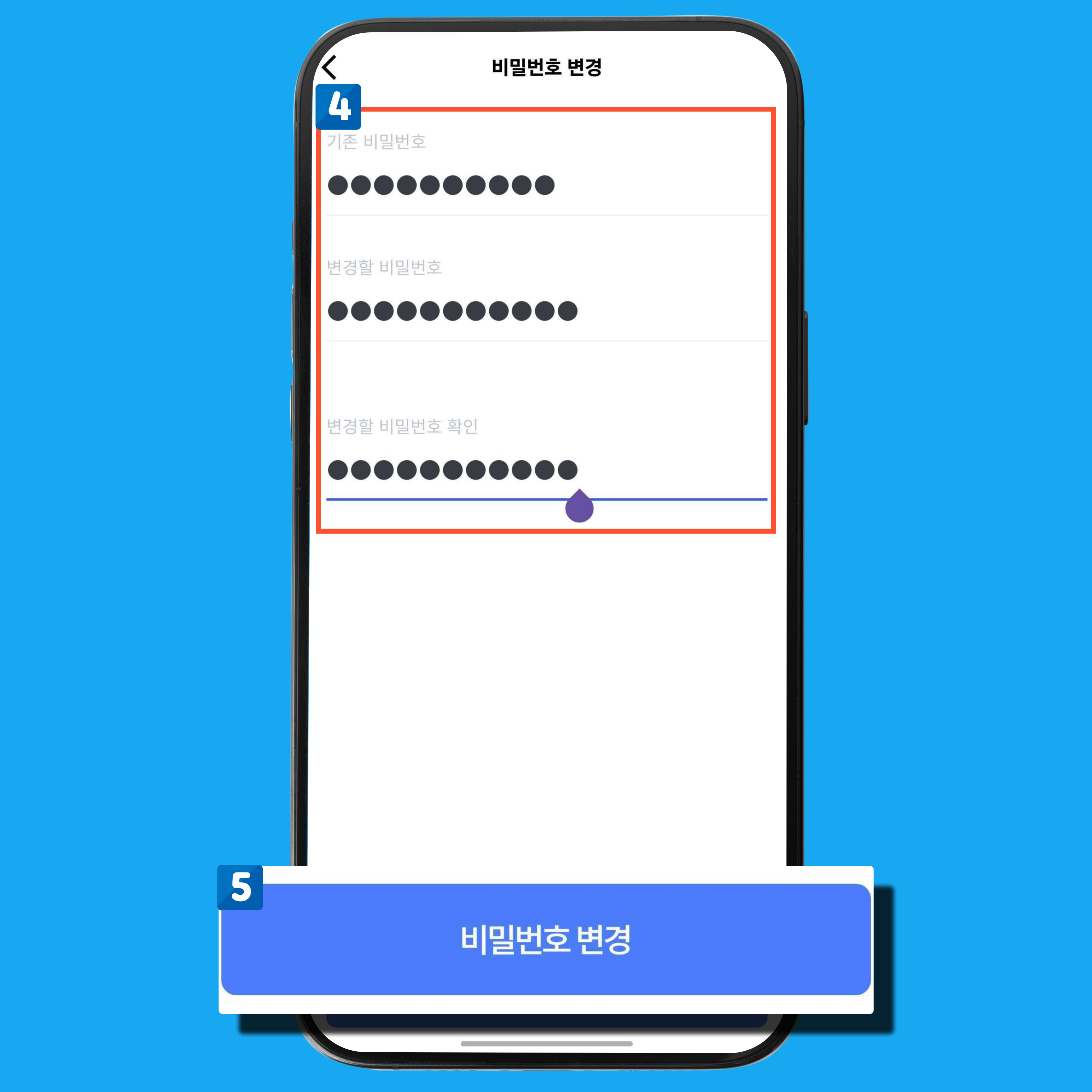 [ 비밀번호 변경 ] 버튼을 눌러 변경완료를 확인해주세요