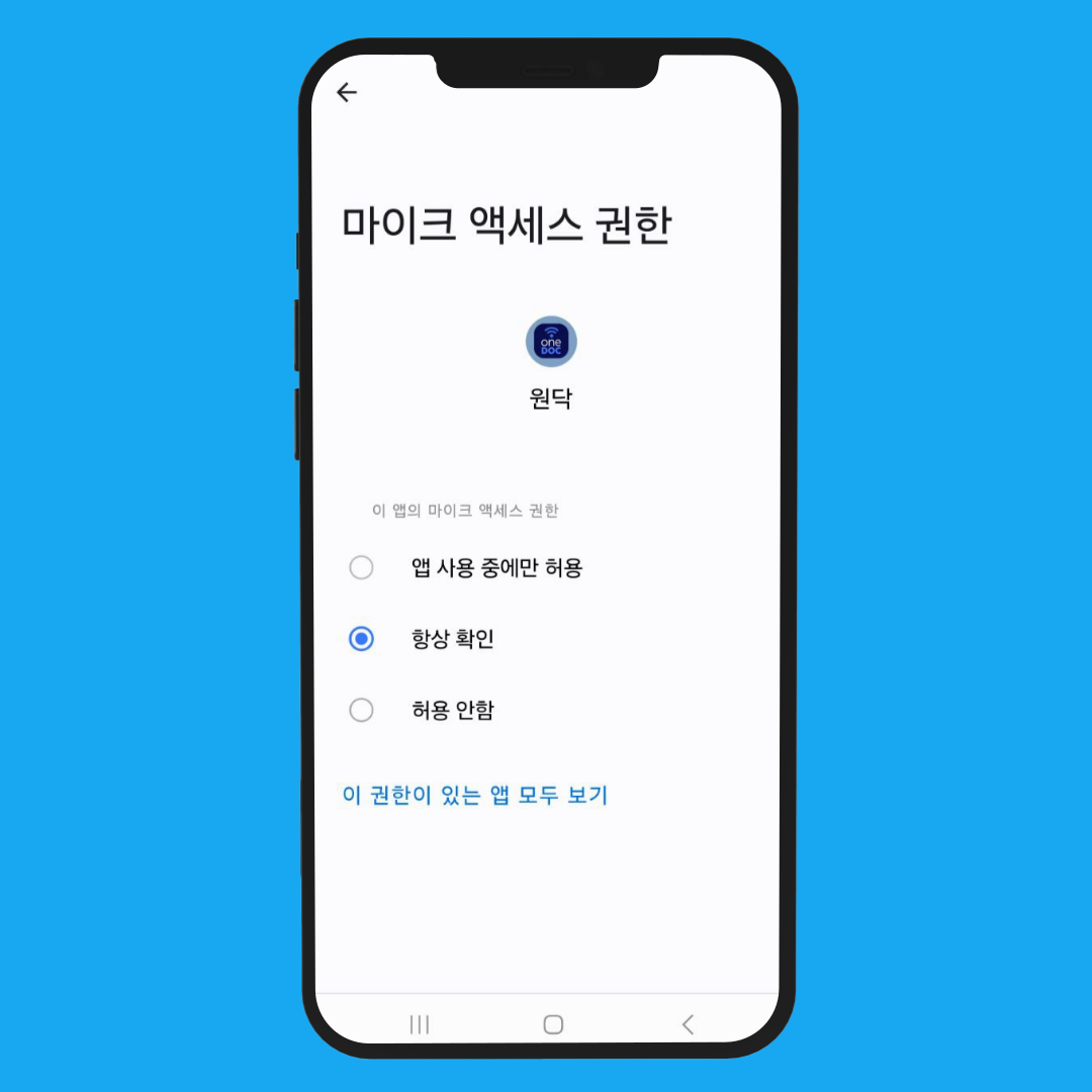 ๋ง์ดํฌ/ ์ฌ์ง ๋ฐ ๋์์ / ์์น / ์ ํ /์นด๋ฉ๋ผ ๊ถํ์ด ๋ชจ๋ ํ์ฉ ๋์๋์ง ํ์ธํด์ฃผ์ธ์.
