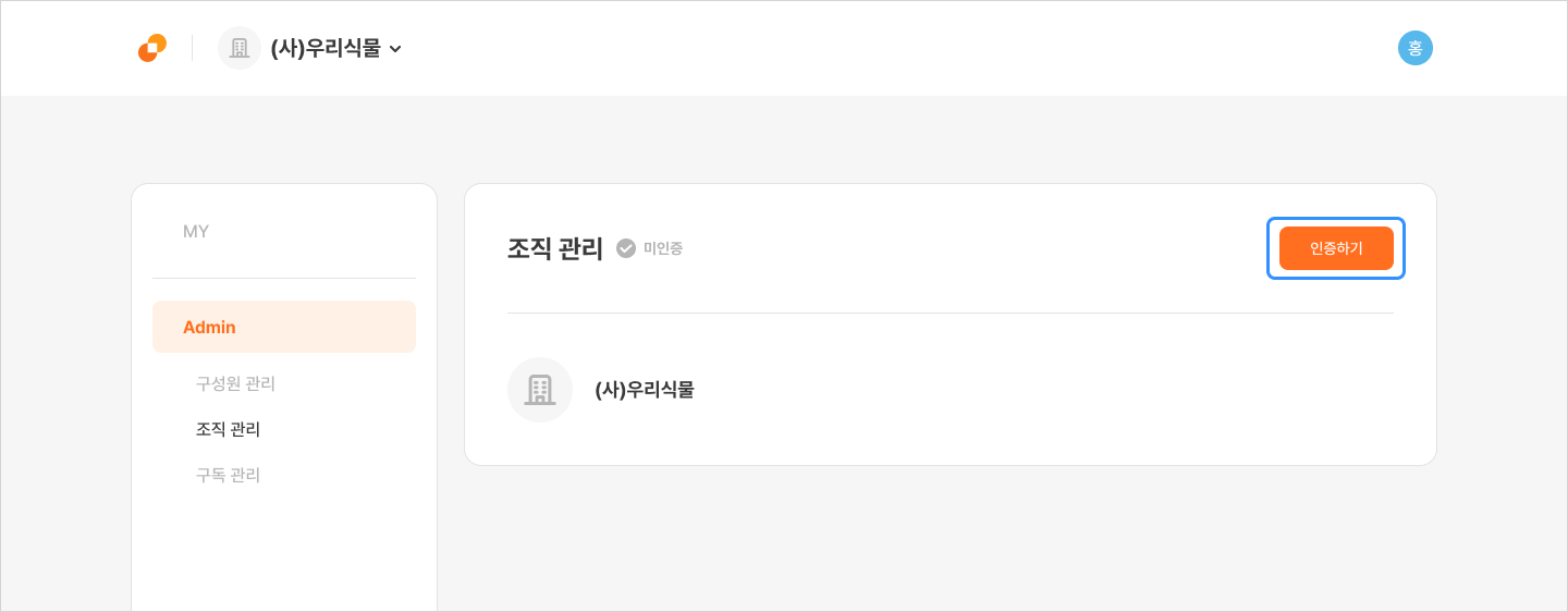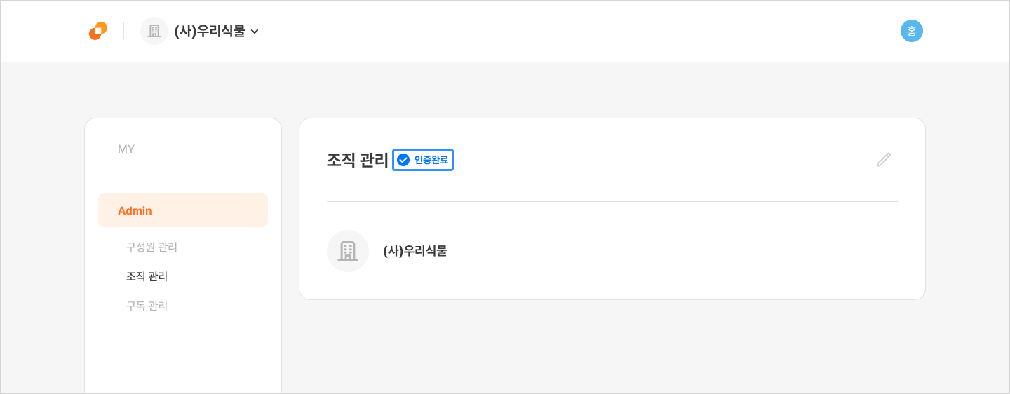 조직 인증 시, 조직 정보를 관리할 수 있습니다.