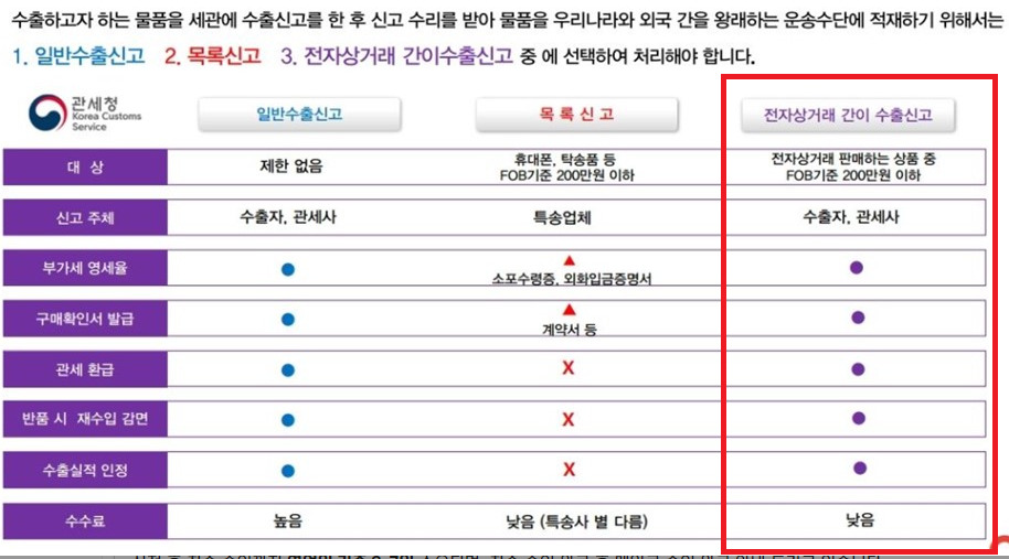 수출 실적 인정 등 정식 수출신고가 필요하실 경우,