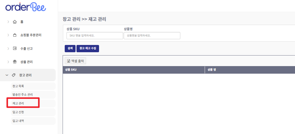 재고 확인보관 재고를 입고신청 후 한진 창고에서 검수를 완료하게 되면 재고 수집이 가능하게 됩니다.[메뉴 : 창고 관리 → 재고 관리]위 메뉴에서 [창고 재고 수집] 선택 후 창고를 "한진인천공항복합물류센터(GDC)"로 설정해주시면 창고에 보관된 재고 정보가 수집됩니다.