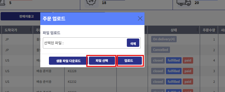 필수 입력 정보가 누락되어 있을 경우 파일 업로드에 실패하므로 오류 메세지 확인 시 누락된 부분을 수정 후 재시도 해주세요.