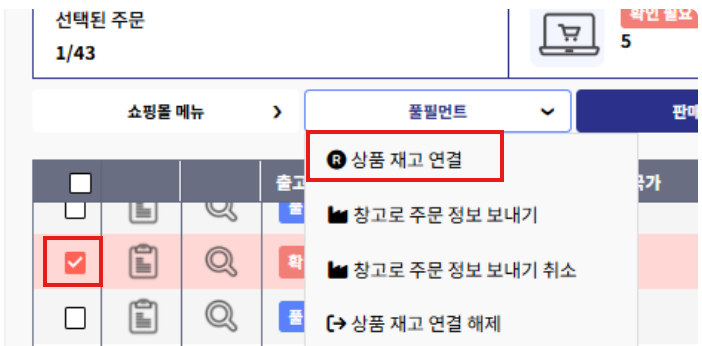 상품 등록 혹은 출고타입을 변경한 뒤에 [쇼핑몰 주문관리]-[주문 관리]로 돌아와서 "상품 재고 연결" 버튼을 클릭하여 상품 연결을 해주세요.