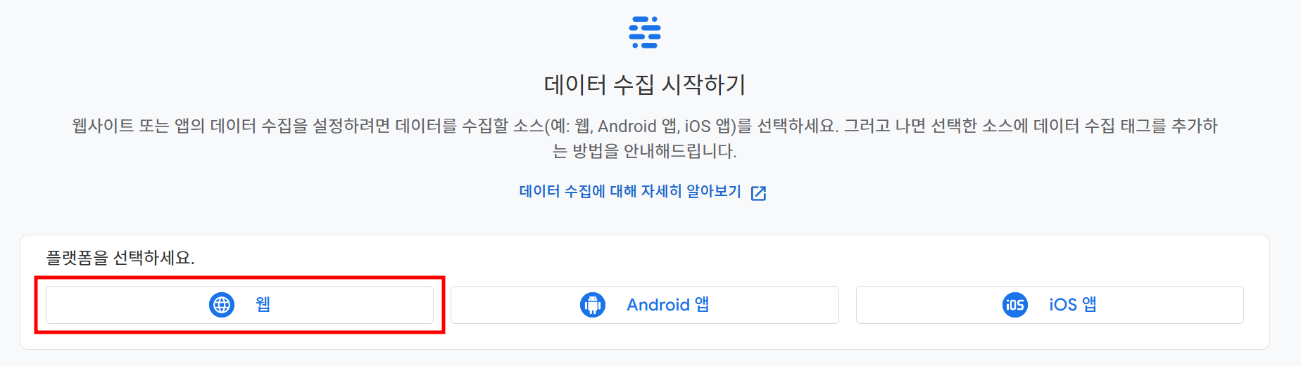 데이터 수집 설정을 클릭하여 다음 단계로 넘어가 주세요.