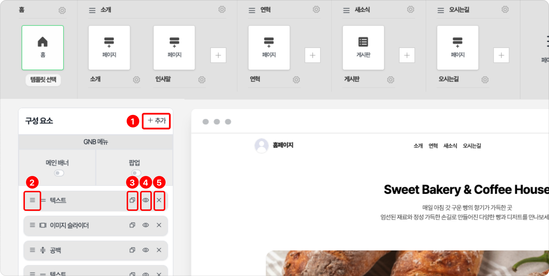 구성 요소란 홈페이지 콘텐츠를 구성하는 요소입니다.