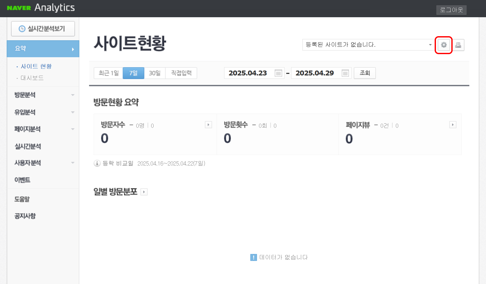 네이버 애널리틱스에 접속 후 로그인 해 주세요.