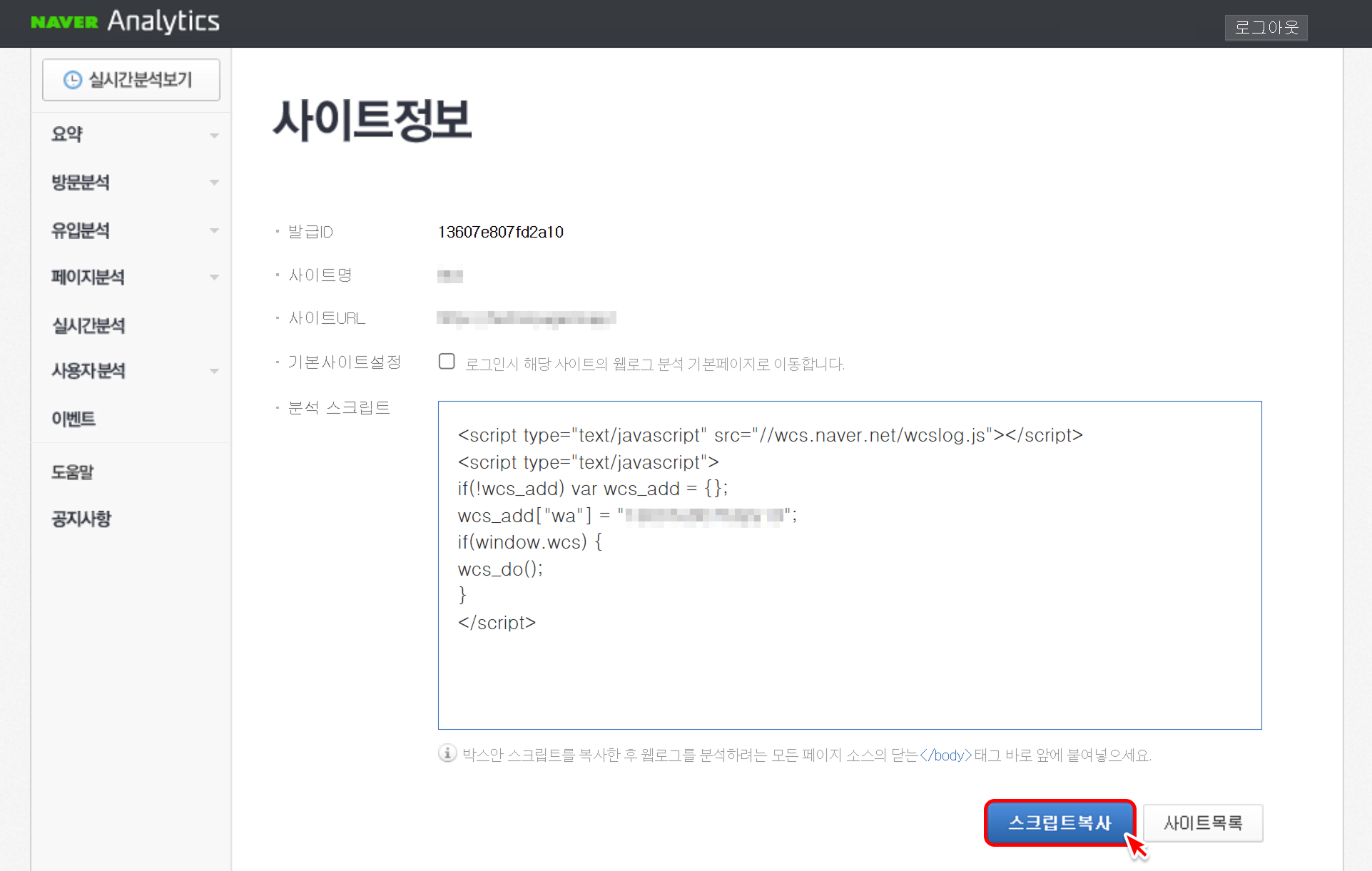스크립트 복사버튼을 클릭해 주세요.