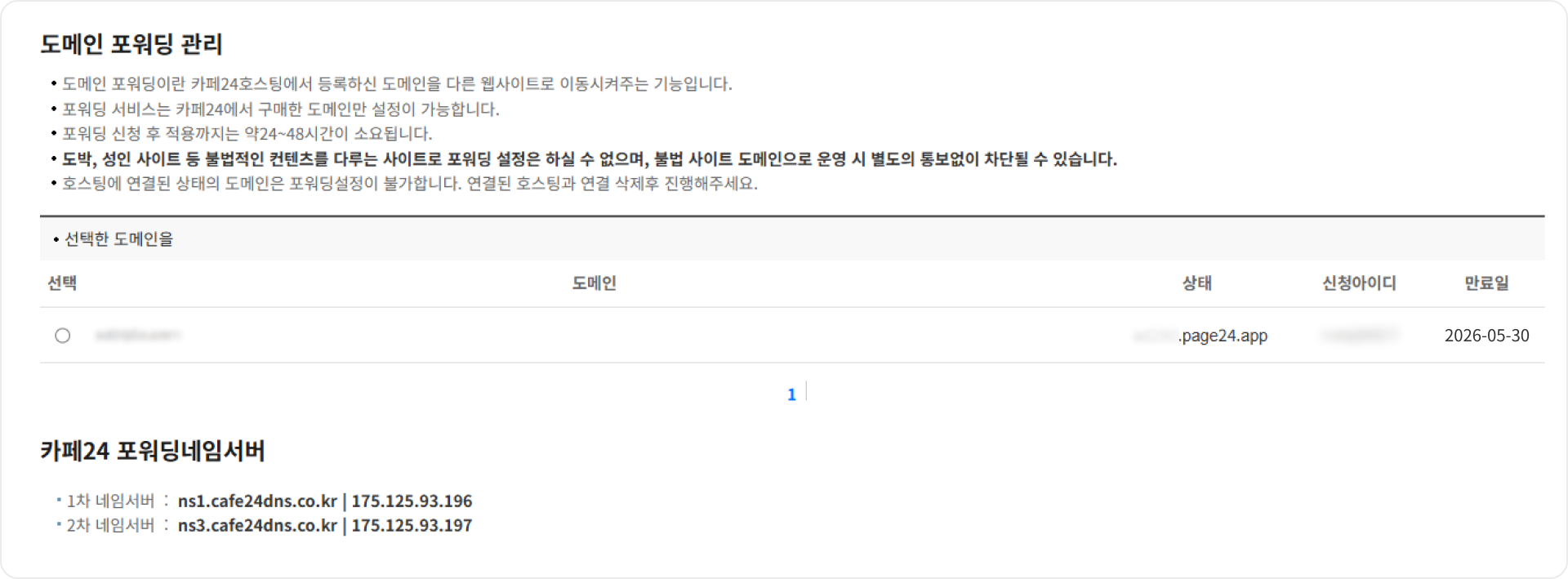 카페24에서 구매한 도메인의 포워딩 설정 방법을 안내해드릴게요.