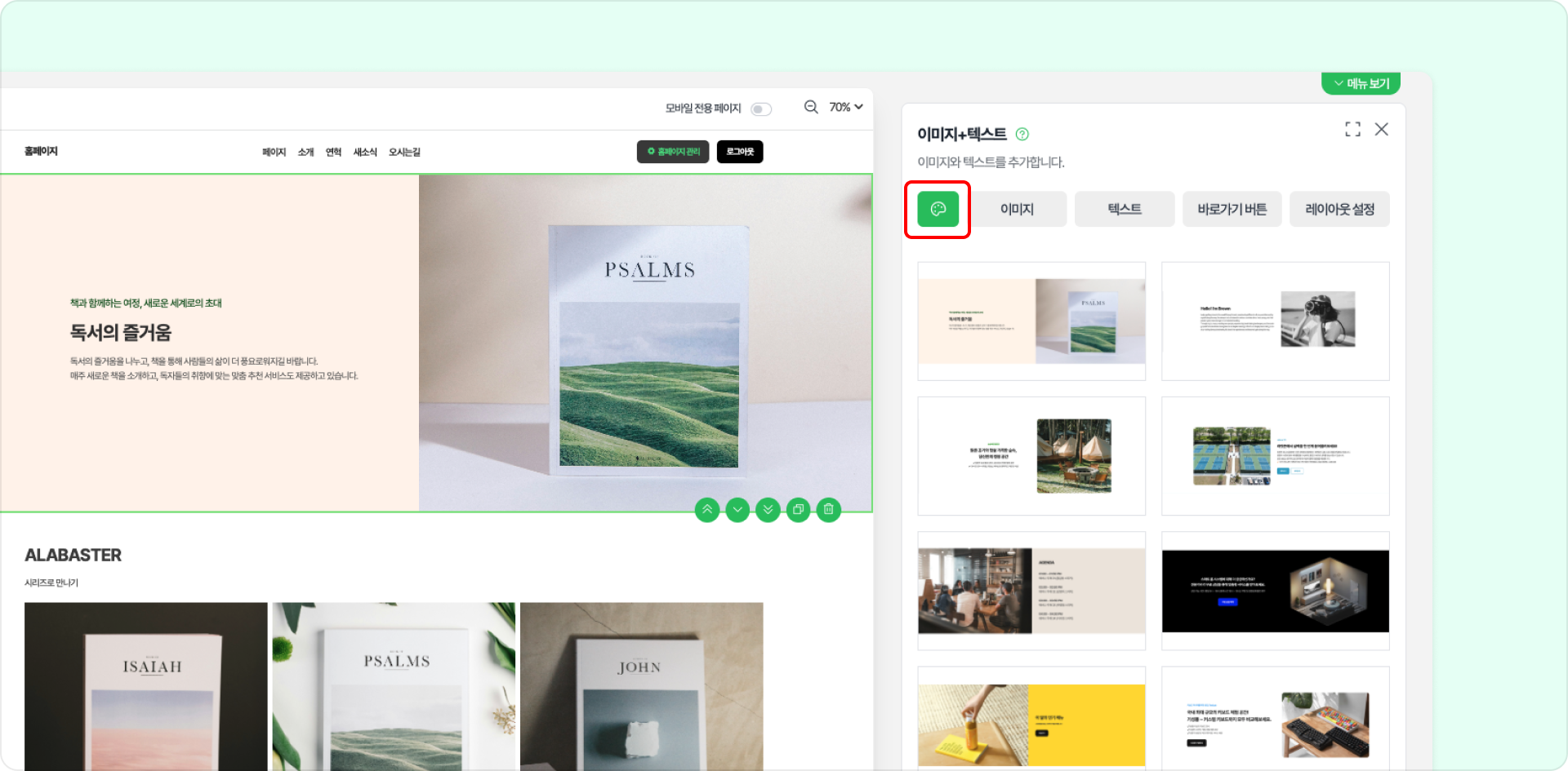 텍스트+이미지: 왼쪽에 텍스트, 오른쪽에 이미지 순서로 설정합니다.