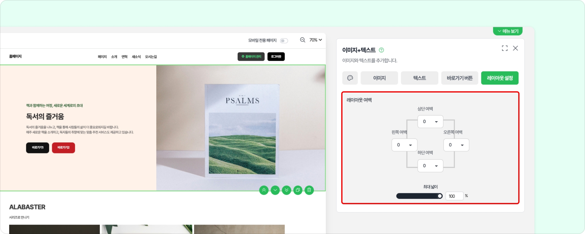 이미지+텍스트 구성 요소의 위, 아래, 왼쪽, 오른쪽 여백을 각각 설정할 수 있습니다.