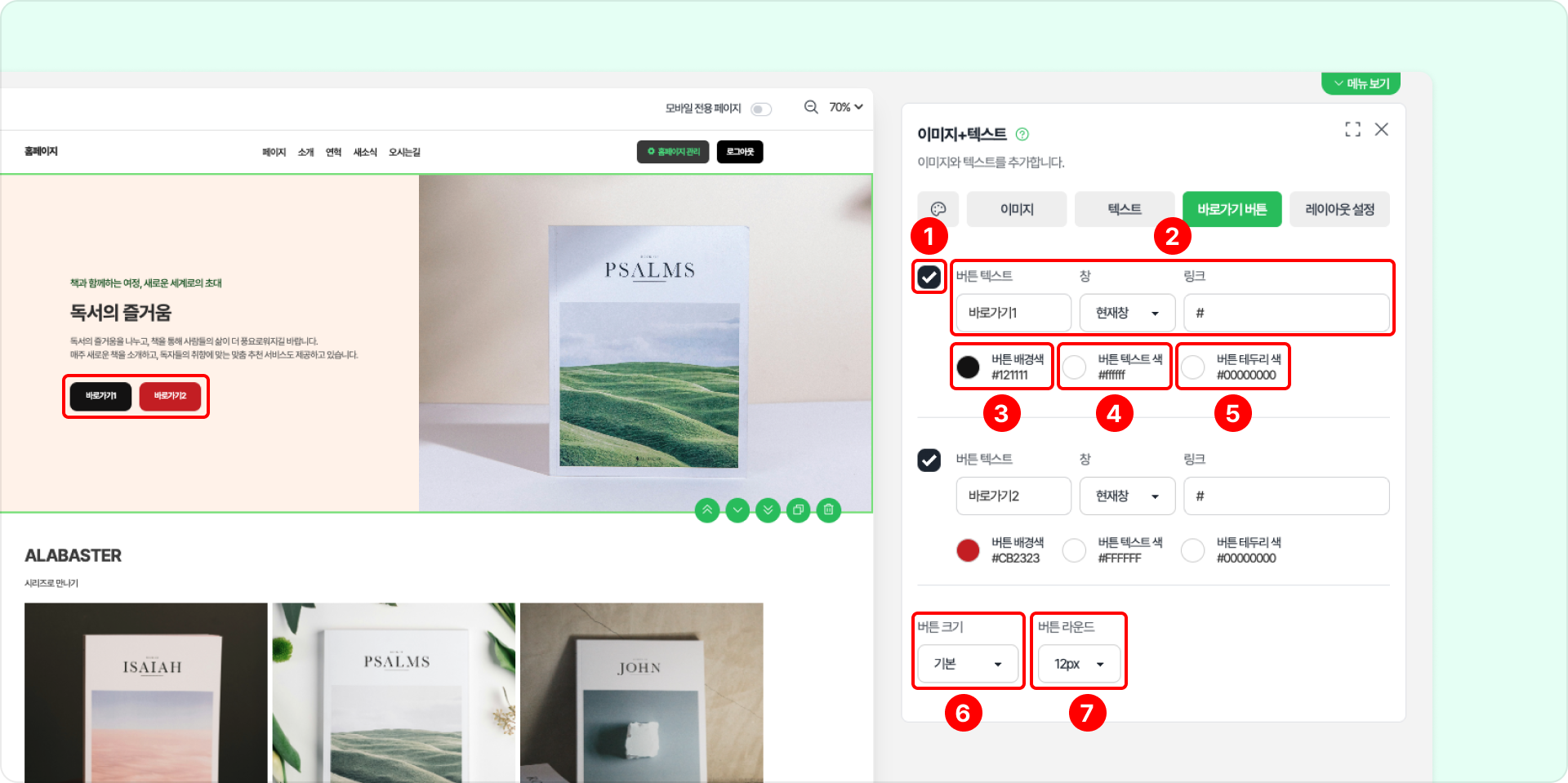 ❹ 버튼 텍스트색: 버튼 내 글자 색상을 설정합니다.