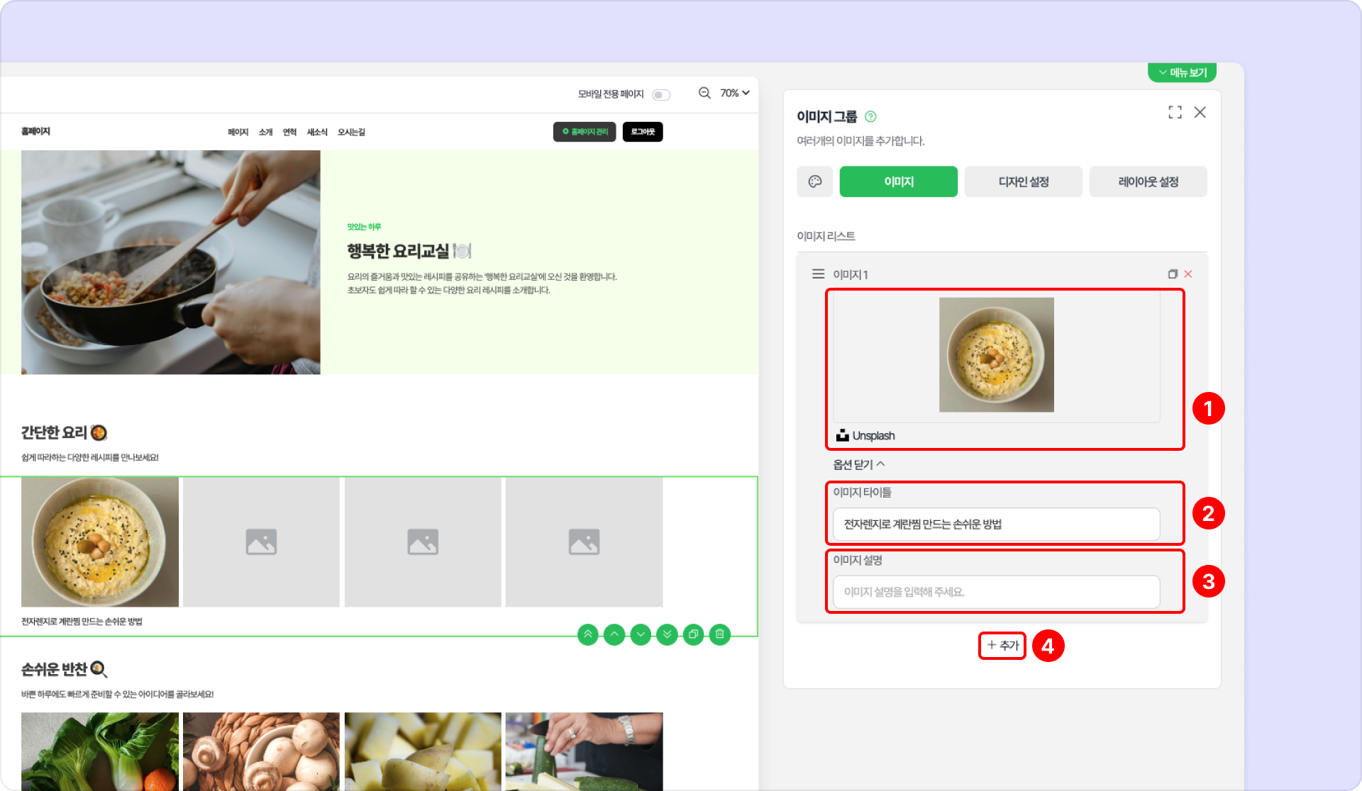 ❸ 이미지 설명: 이미지에 대한 설명을 입력합니다. 입력하지 않을 시 이미지만 노출됩니다.