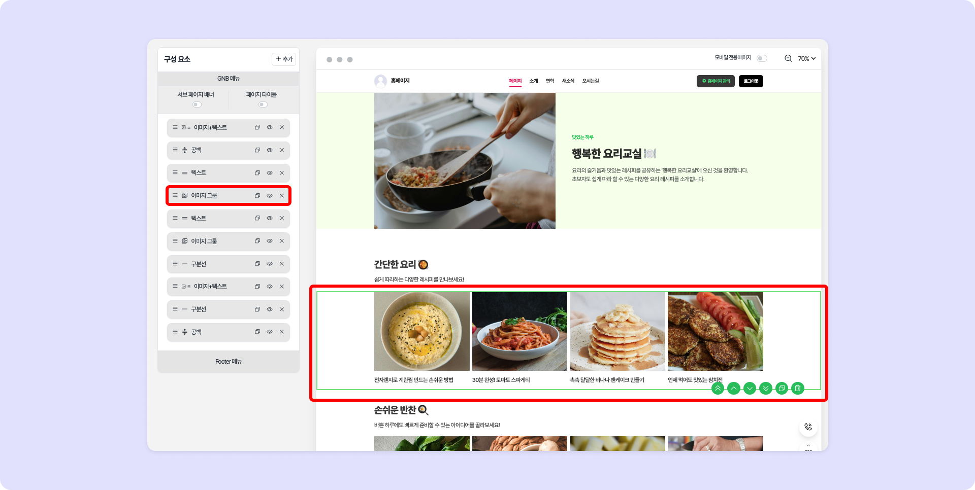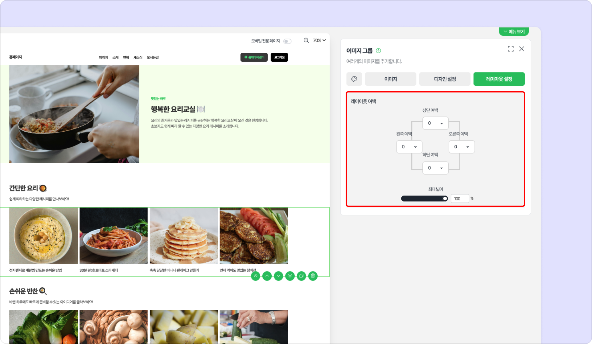이미지 그룹 구성 요소의 위, 아래, 왼쪽, 오른쪽 여백을 각각 설정할 수 있습니다.