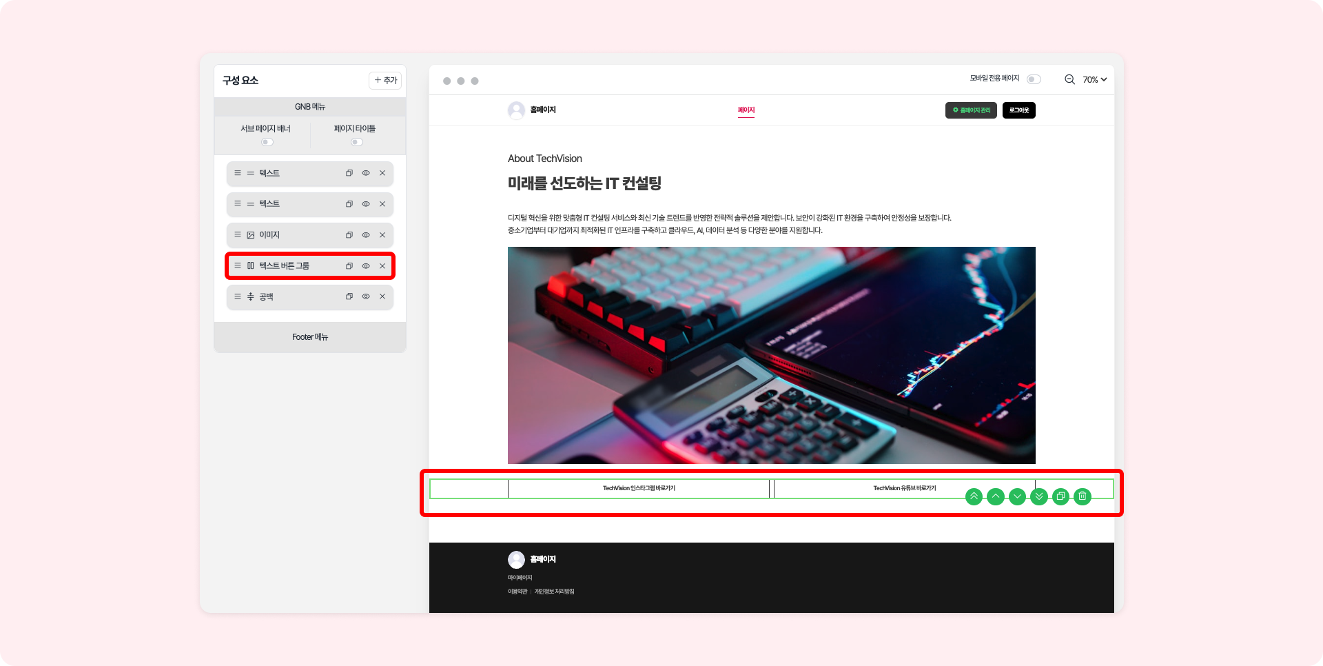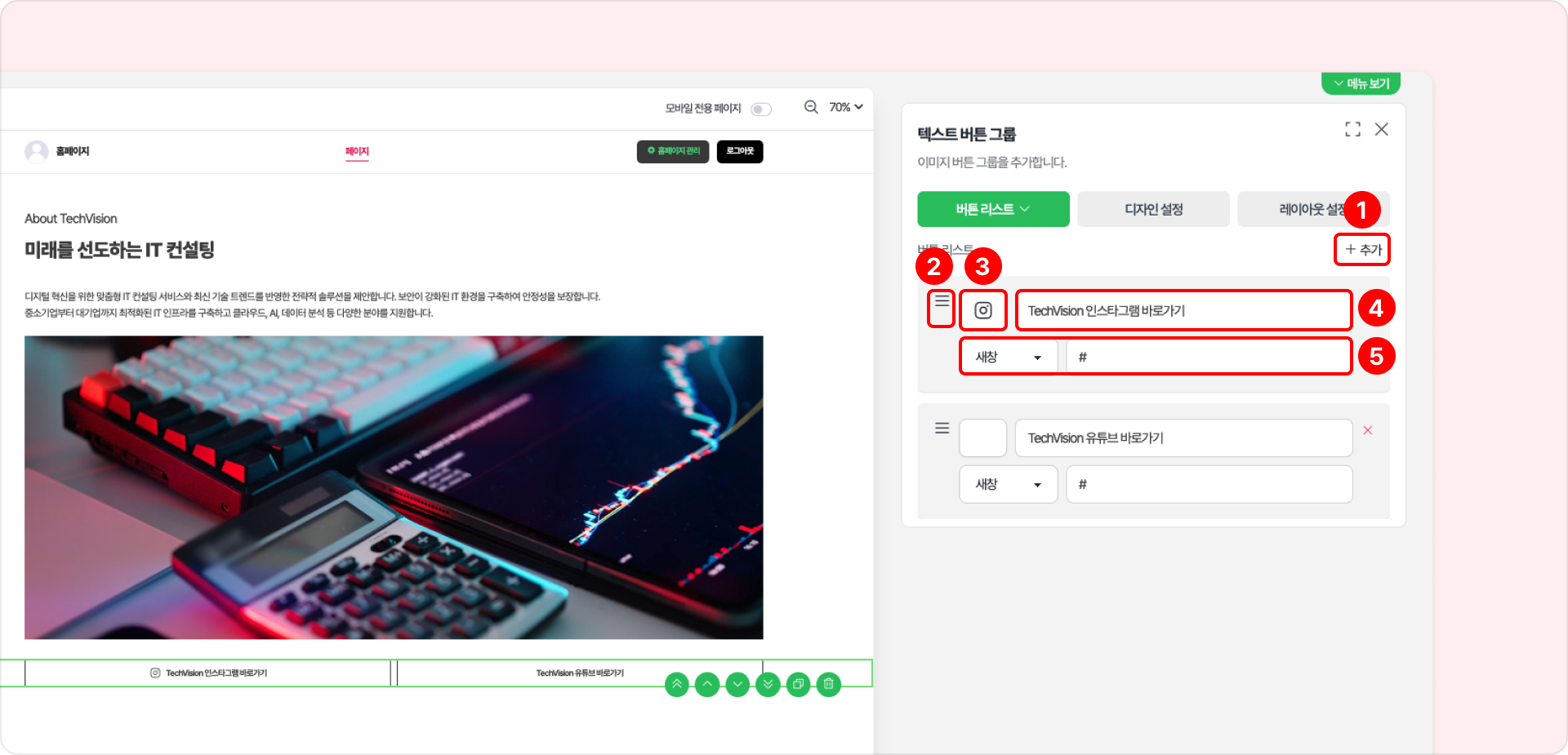 텍스트 버튼 그룹을 생성하고, 각 버튼에 링크를 설정할 수 있습니다.