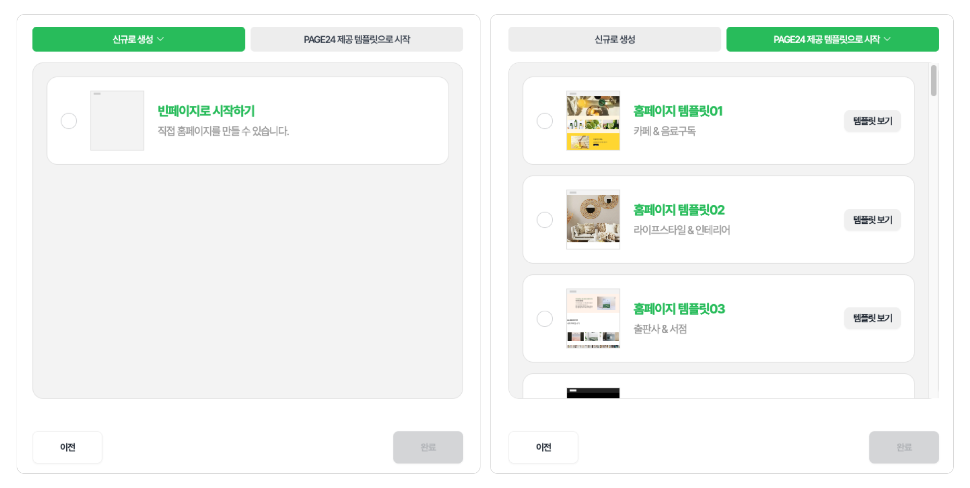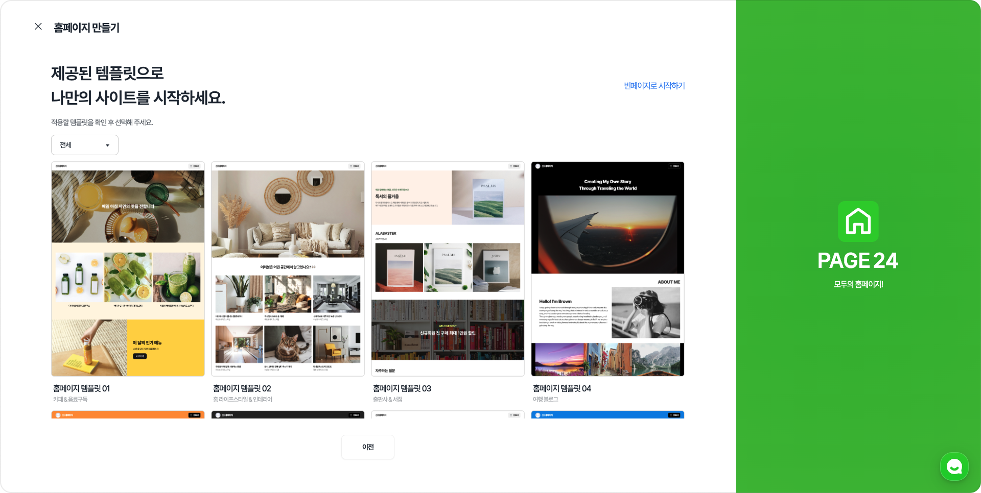 페이지24에서 제공하는 템플릿으로 시작하시려면 원하는 템플릿을 선택합니다.