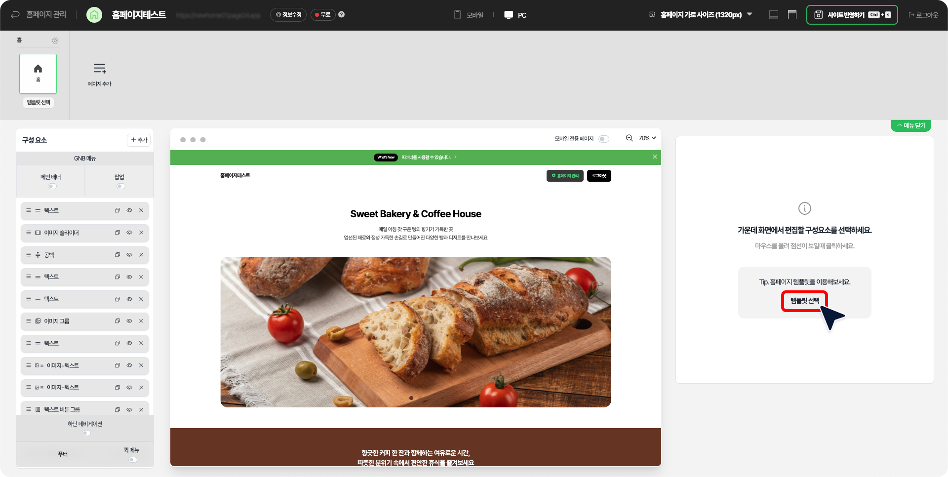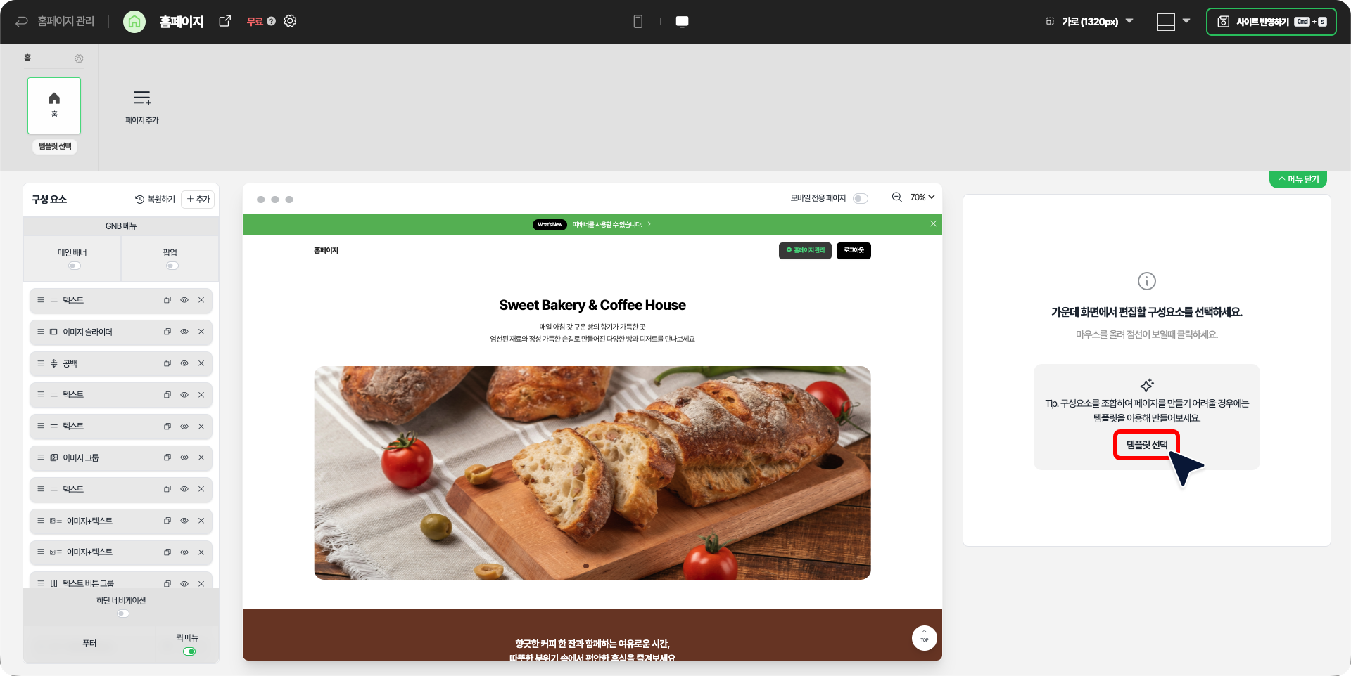 홈페이지 생성이 완료되면 바로 편집할 수 있습니다.