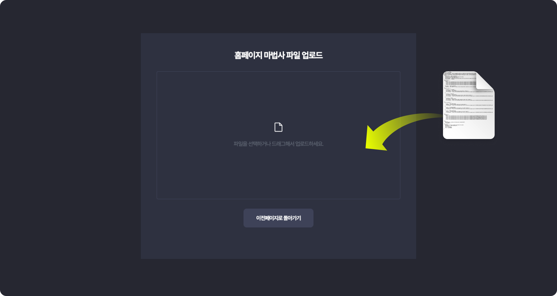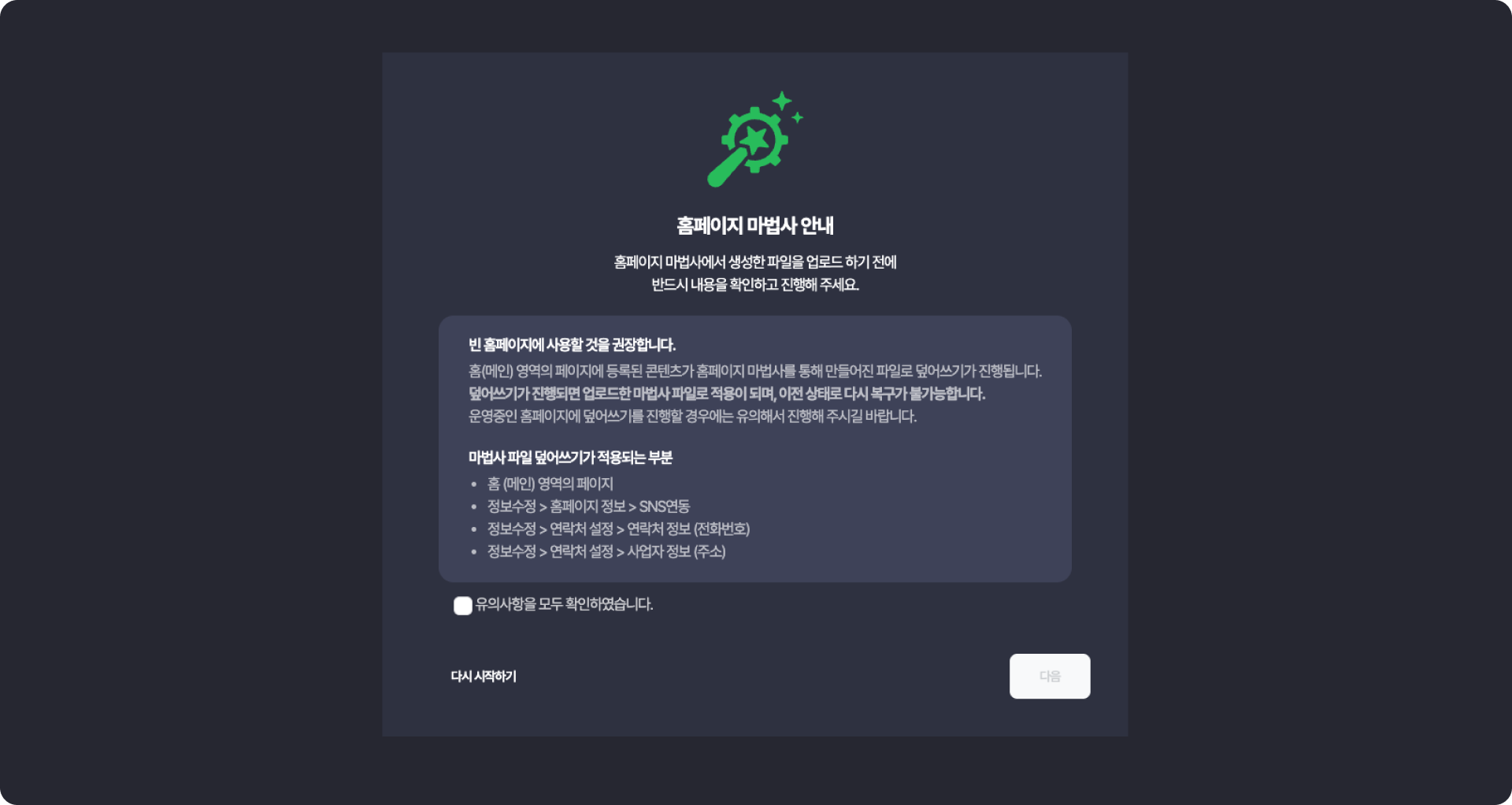 홈페이지 마법사에서 다운로드한 파일을 업로드해 주세요.
