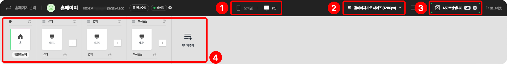 홈페이지의 각 페이지를 관리할 수 있는 패널입니다.