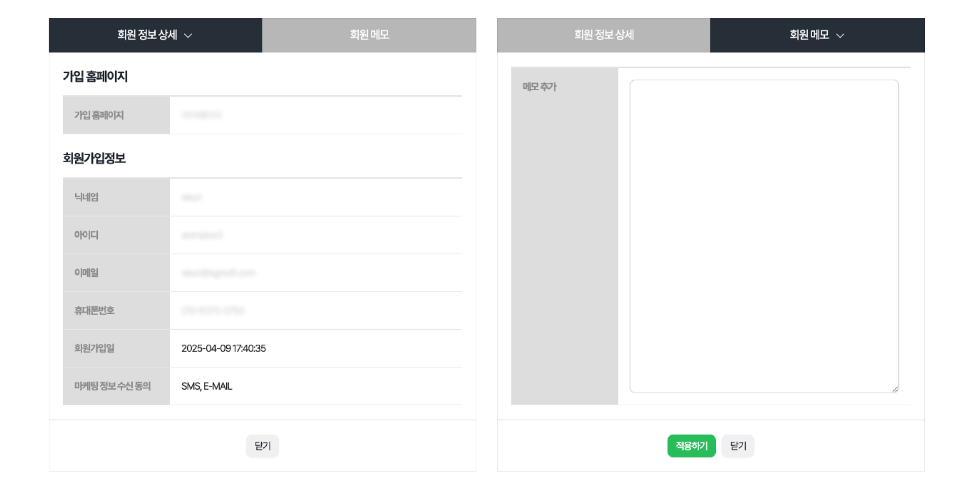회원 메모: 회원에 대한 메모를 기재합니다.