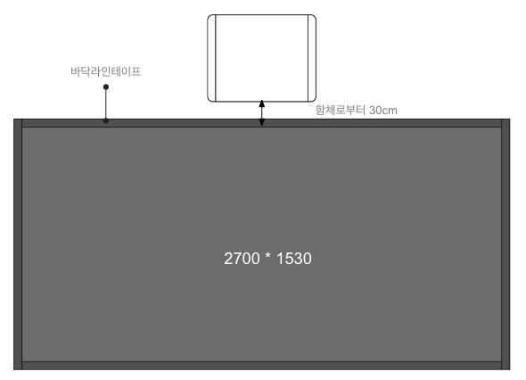 바닥라인테이프로 사방을 붙여줍니다. (이때 일반테이프는 스크린에 끈적이가 남거나 손상을 입힐 수 있으니 바닥전용라인테이프를 사용하여야 합니다.)