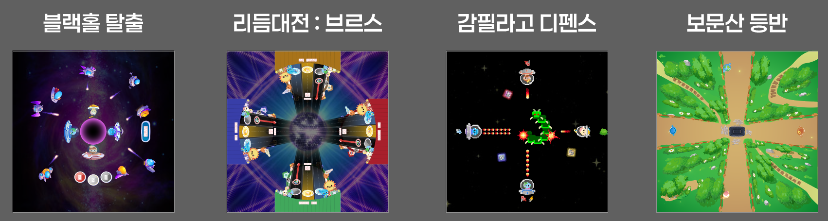 곡면(3D 돔) 형태의 화면과 버튼 조작을 통해 사용자는 협동·경쟁·리듬·반응형 미션을 체험하게 됩니다.