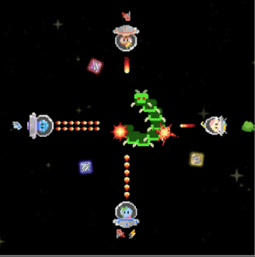 4명이 힘을 합쳐 우주 괴물을 물리치는 방식