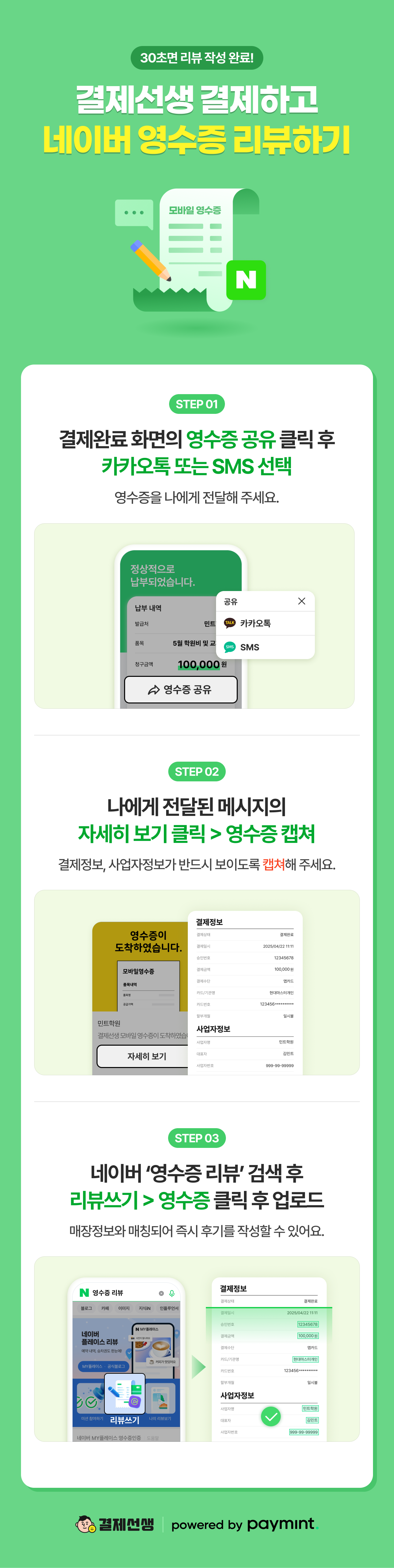결제선생 청구서로 결제한 고객에게 네이버 플레이스 리뷰 참여를 유도하고 싶으신가요?