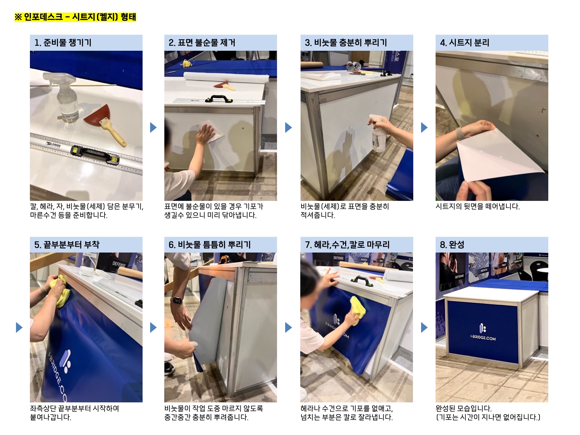 PVC 켈지를 이용해 인포데스크에 부착하는 방법입니다.