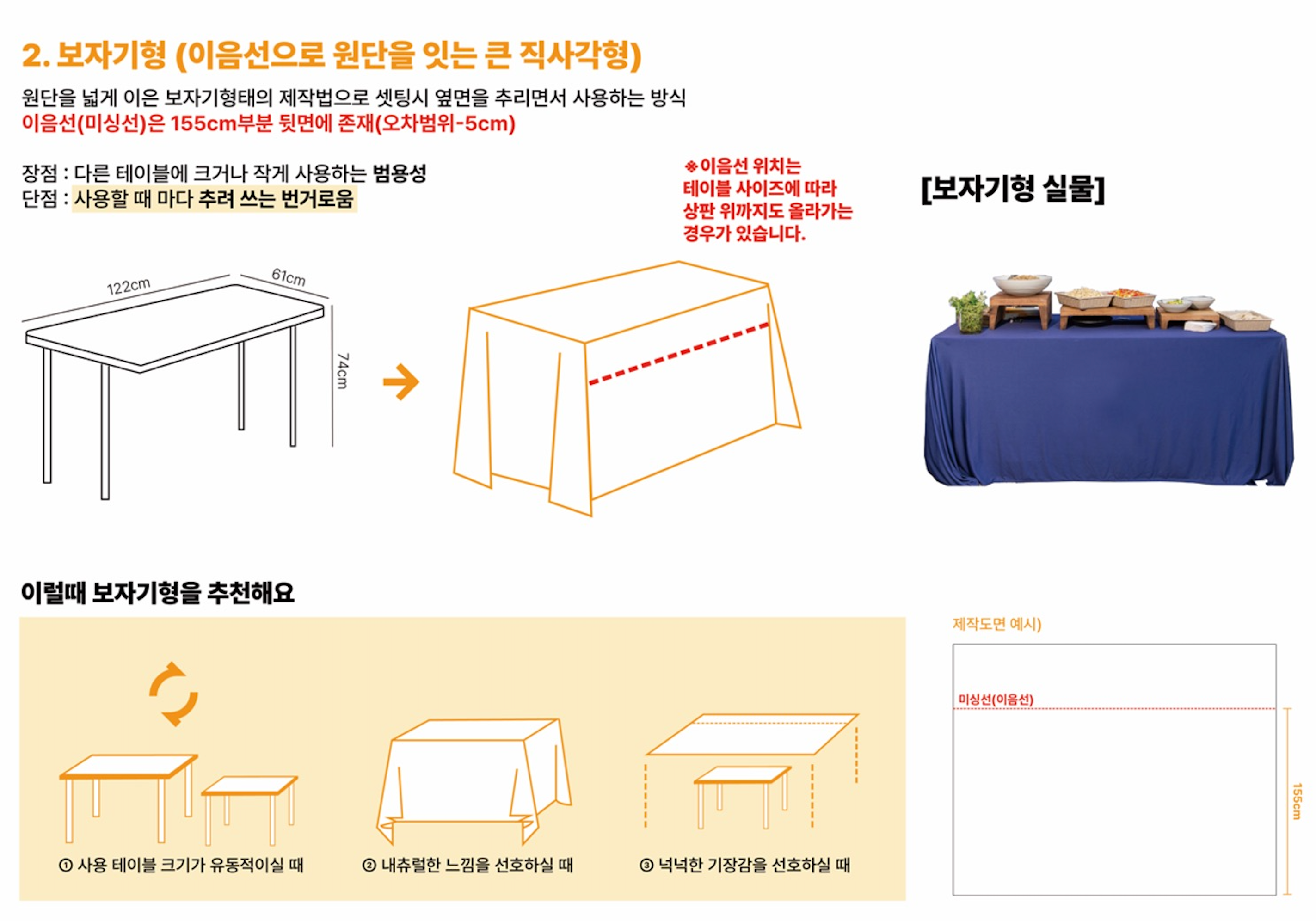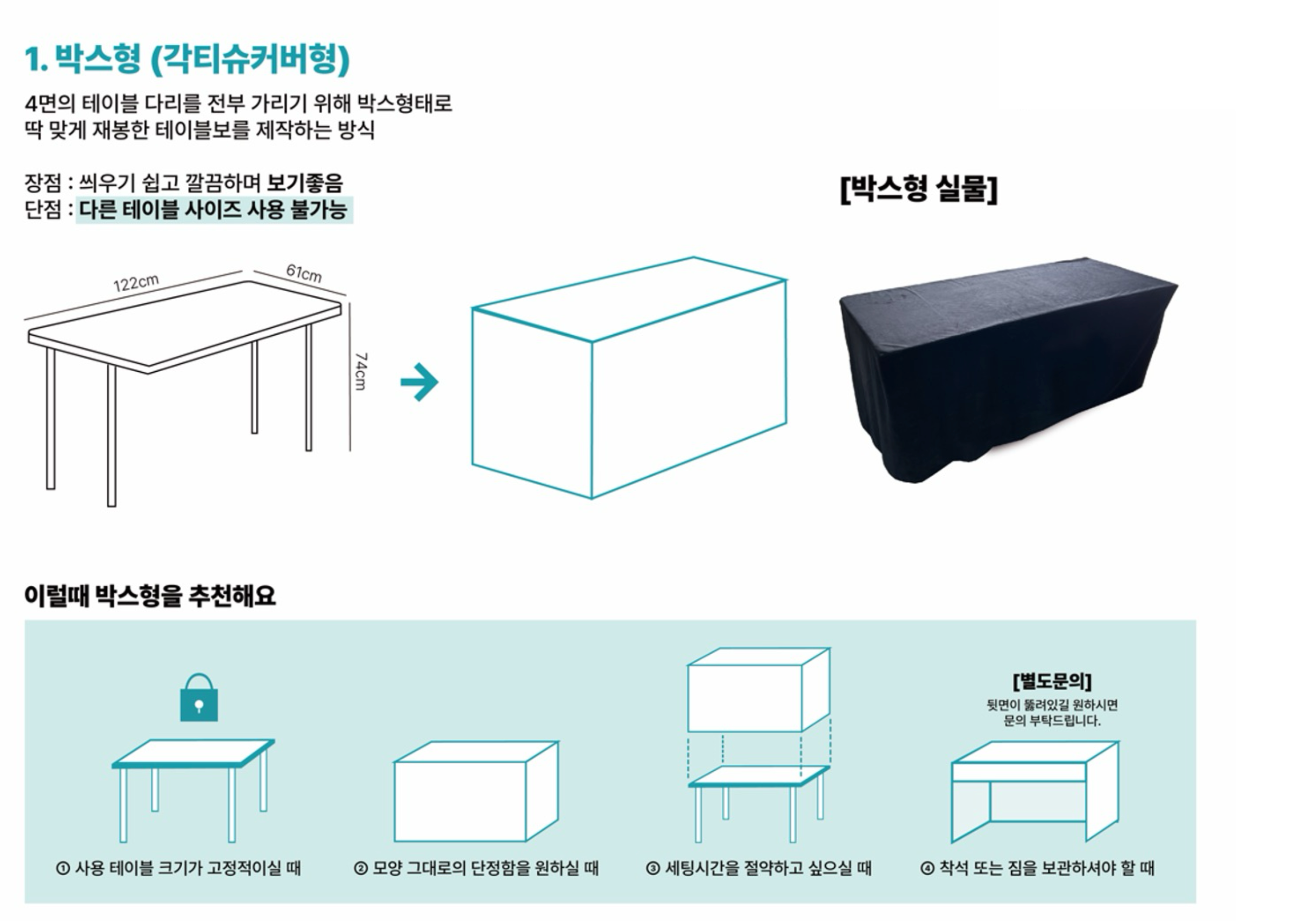 고급 천으로 된 테이블보에 로고 인쇄를 한 뒤 테이블을 감싸는 형태입니다.