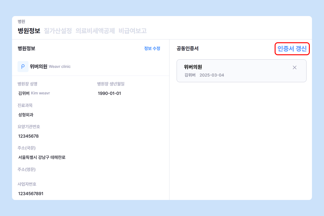 병원 공동인증서는 1년에 한 번 갱신이 필요해요.