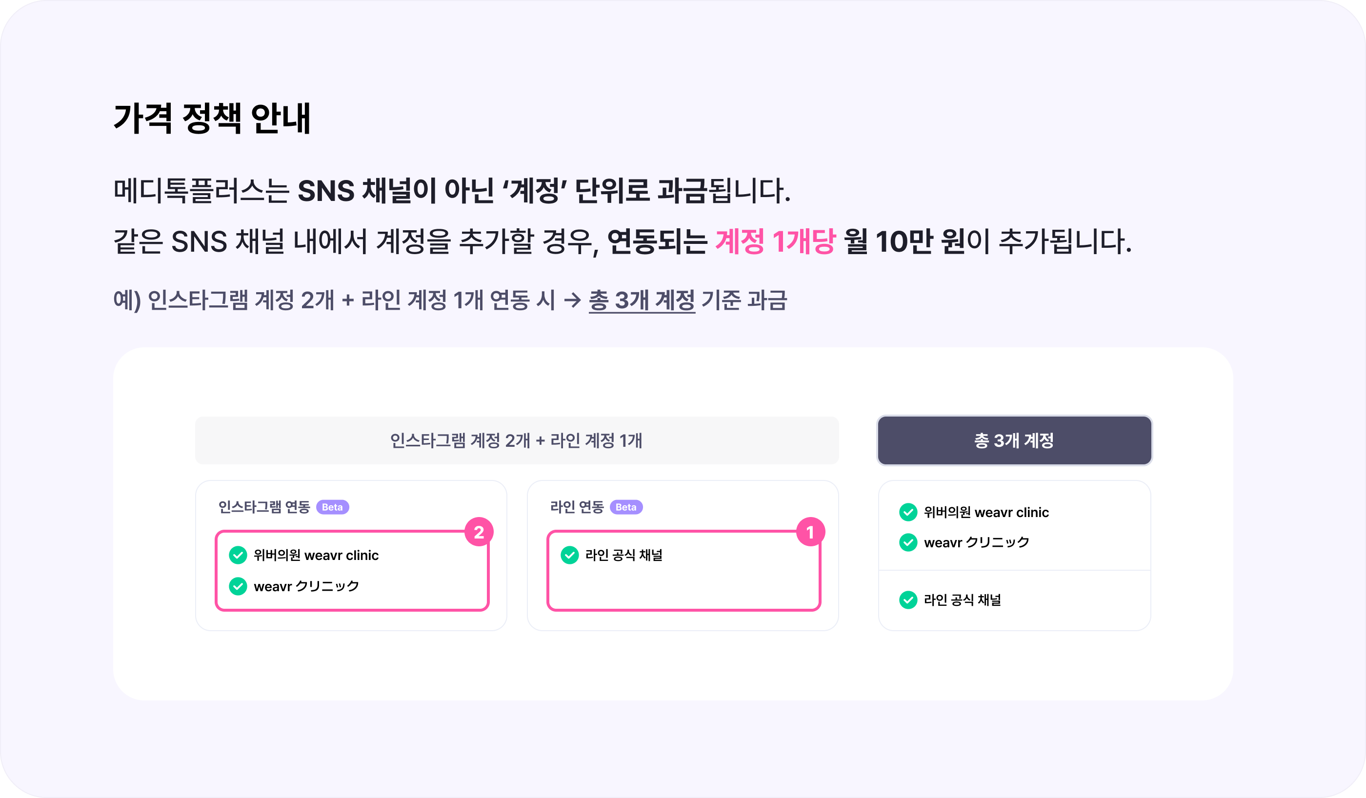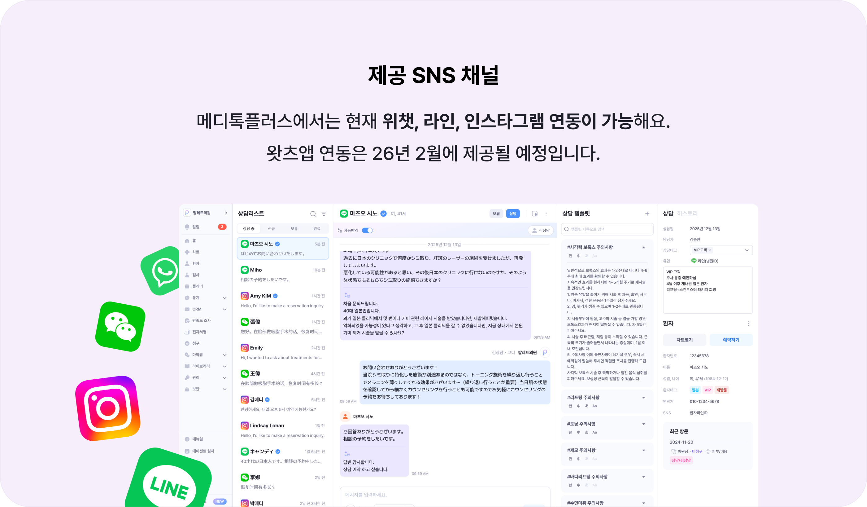 메디톡 플러스는 상담 운영 효율을 높이기 위한 다양한 기능을 지속적으로 고도화해 나갈 예정이며, 보다 안정적이고 향상된 서비스 제공을 위해 유료 전환이 진행되는 점 양해 부탁드립니다.