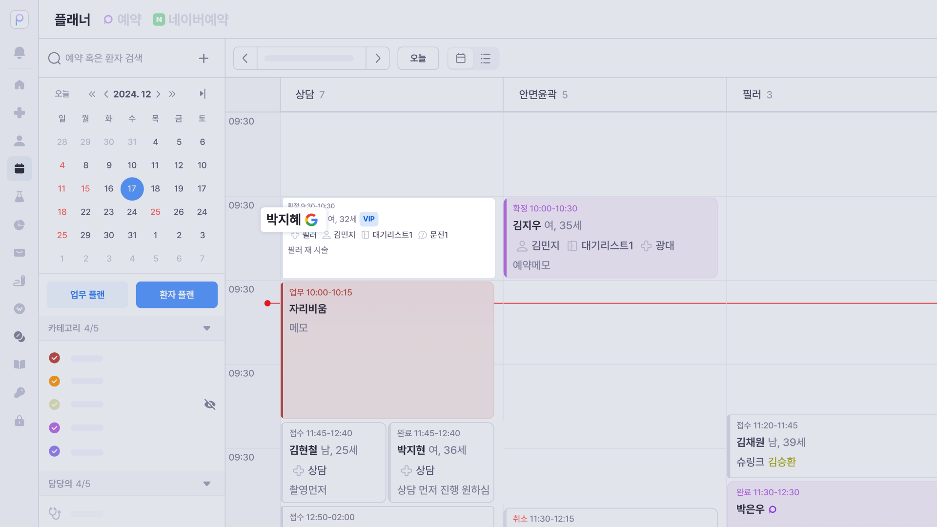 구글 예약을 통해 유입된 외국인 환자 예약 정보는 닥터팔레트 차트 내 예약 페이지에서 한눈에 확인 및 관리할 수 있어요. 별도의 시스템 전환 없이도 손쉽게 외국인 환자 예약 현황을 확인하고, 진료를 준비해보세요.