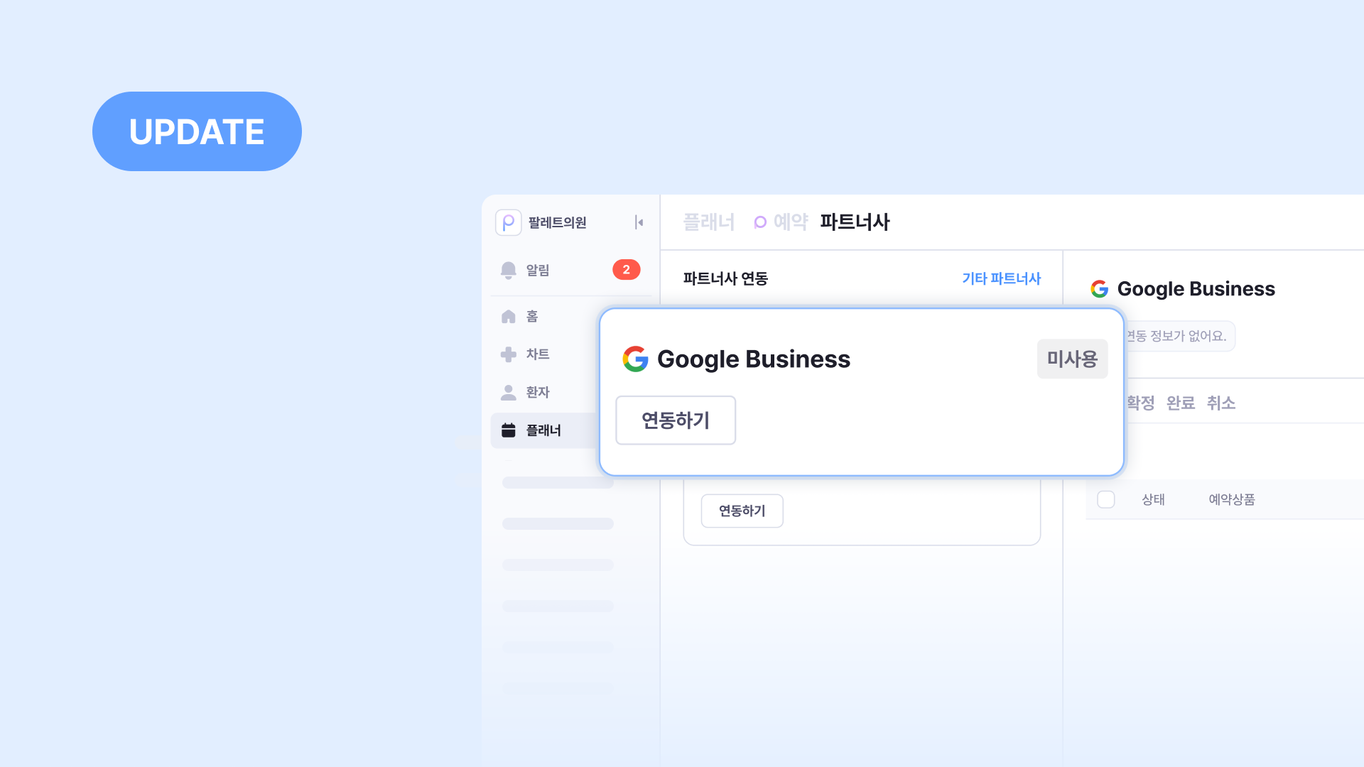 ✔ 검색 → 정보 탐색 → 예약 → 방문까지 원스톱을 원하신다면? 닥터팔레트를 통해 간편하게 구글 연동할 수 있어요.