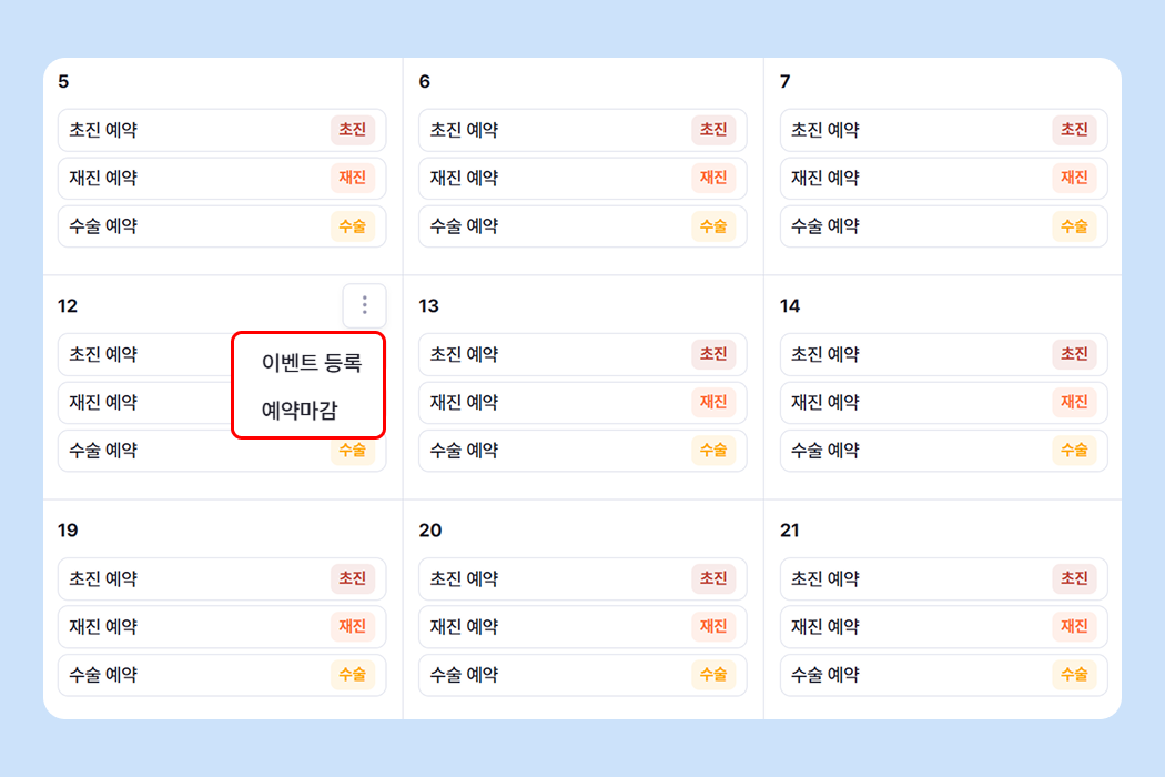이벤트를 등록할 날짜에서 더보기 버튼 > '이벤트 등록'을 클릭해 주세요.