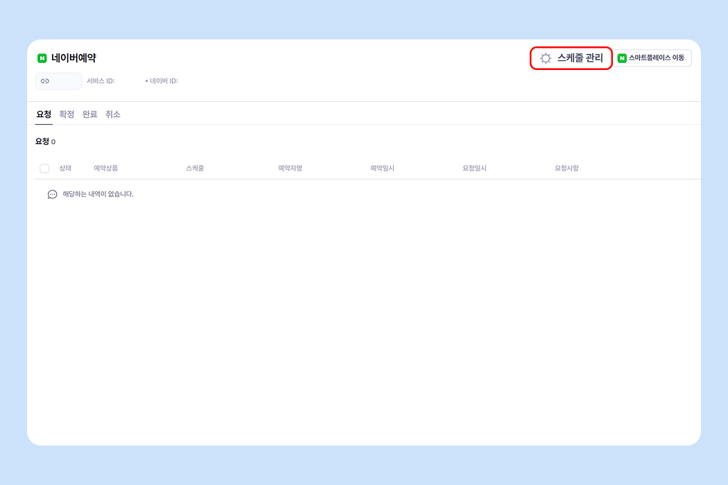 스마트플레이스로부터 예약정보를 받아올 스케줄을 연결해 주세요.
