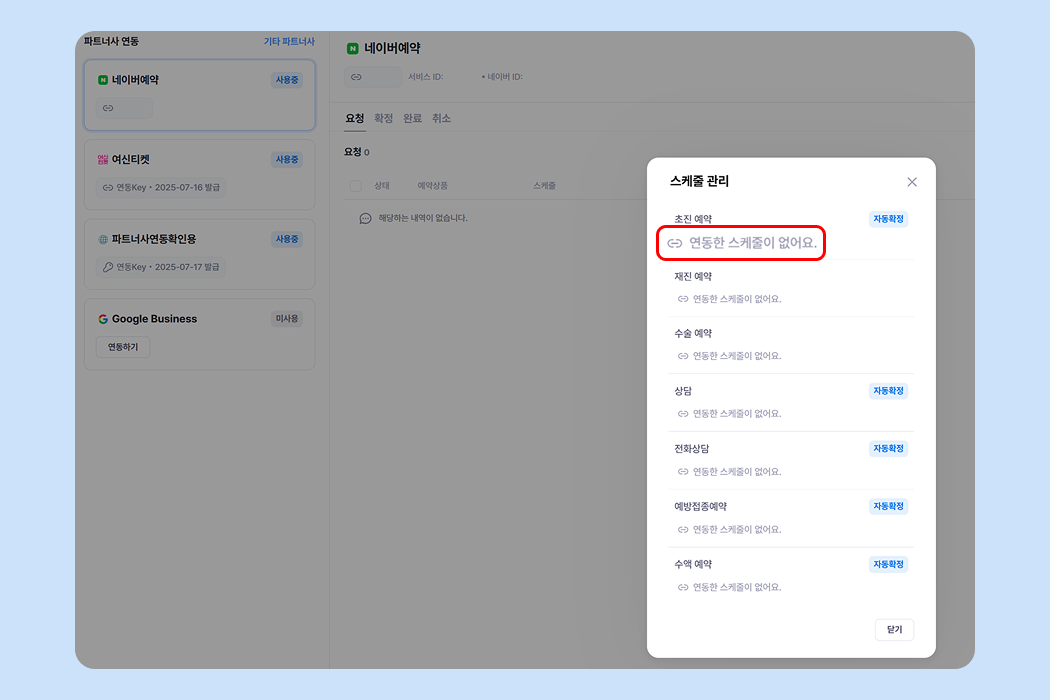 ✅ 파트너사 연동을 활성화하여 네이버예약 스케줄로 사용할 수 있도록 전환해 주세요.