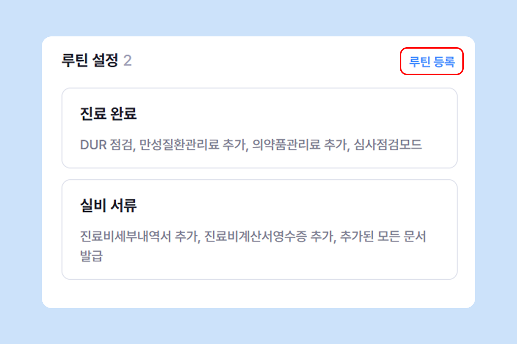 진료 마무리 후, 중앙 하단의 루틴 버튼을 클릭해 자동화를 진행해 주세요.