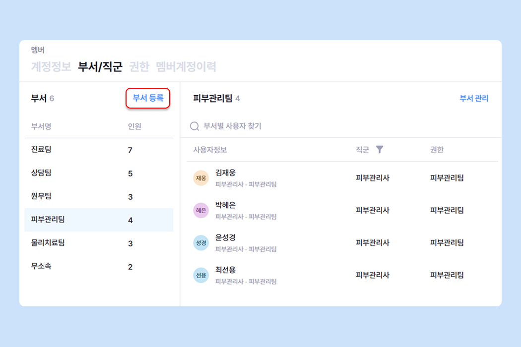원내 부서를 등록해 조직도를 구성해 보세요.