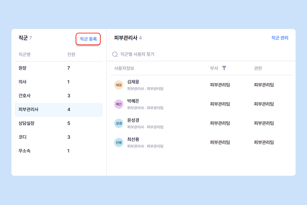 [보안 > 멤버 > 부서/직군] 페이지에서 '직군 등록'을 눌러 새로운 직군을 생성해 주세요.