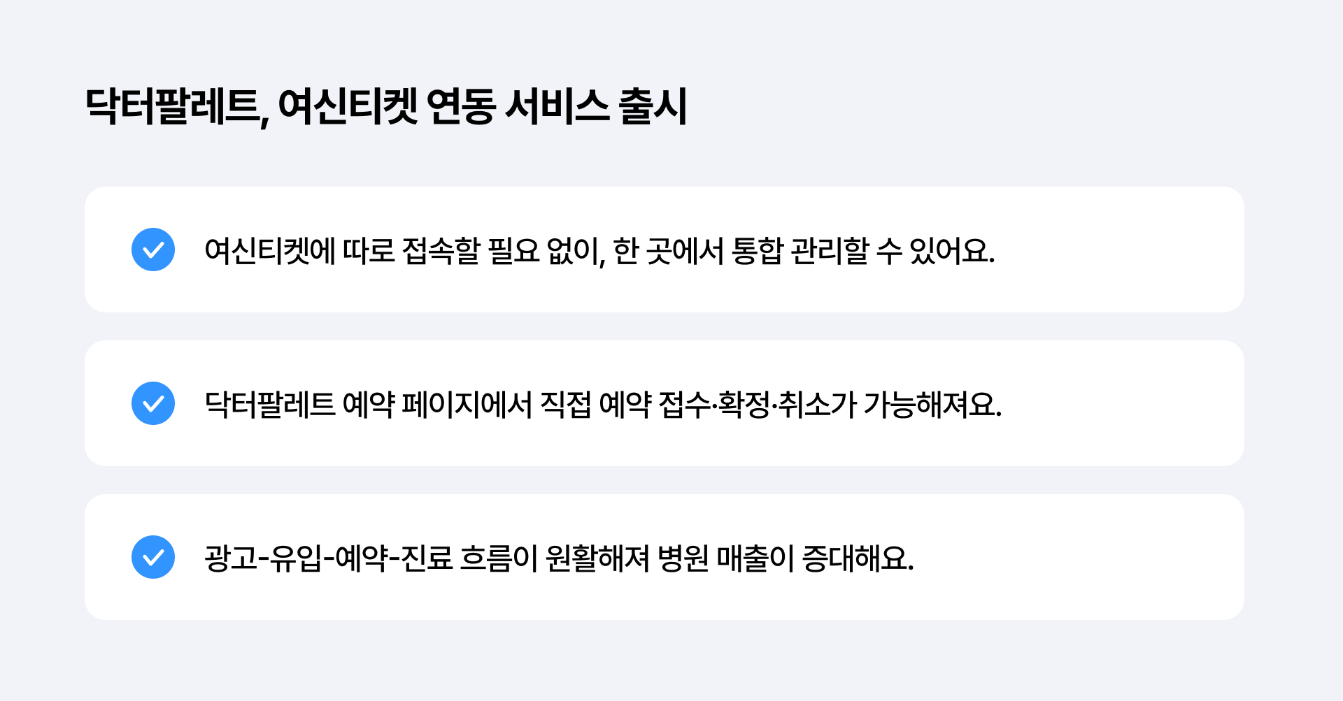 여신티켓 광고를 통해 환자 유입은 늘리고, 닥터팔레트로 예약관리는 더 쉽게할 수 있는 기회, 지금 바로 확인해볼까요?