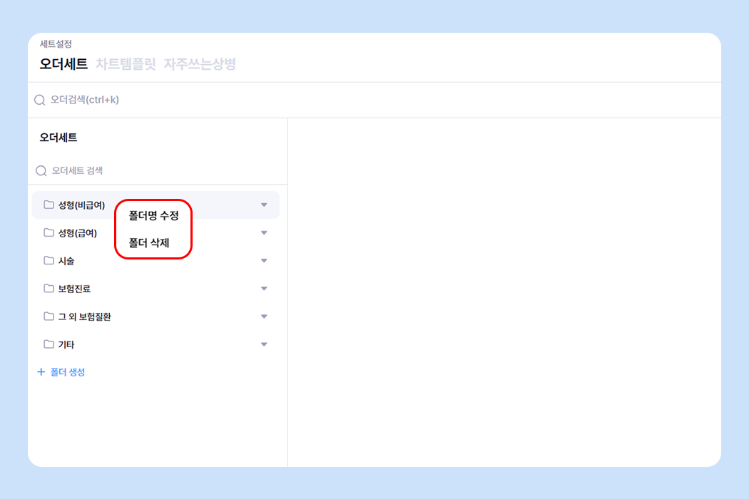 📢 폴더 삭제 시, 포함된 오더세트도 모두 삭제되니 참고해 주세요!