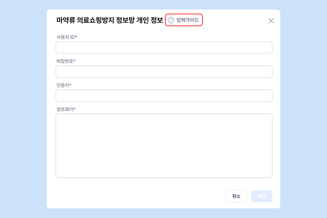 의료쇼핑방지정보망 계정 정보를 닥터팔레트에 입력하면, 1년 내 마약류 이력을 확인할 수 있어요.